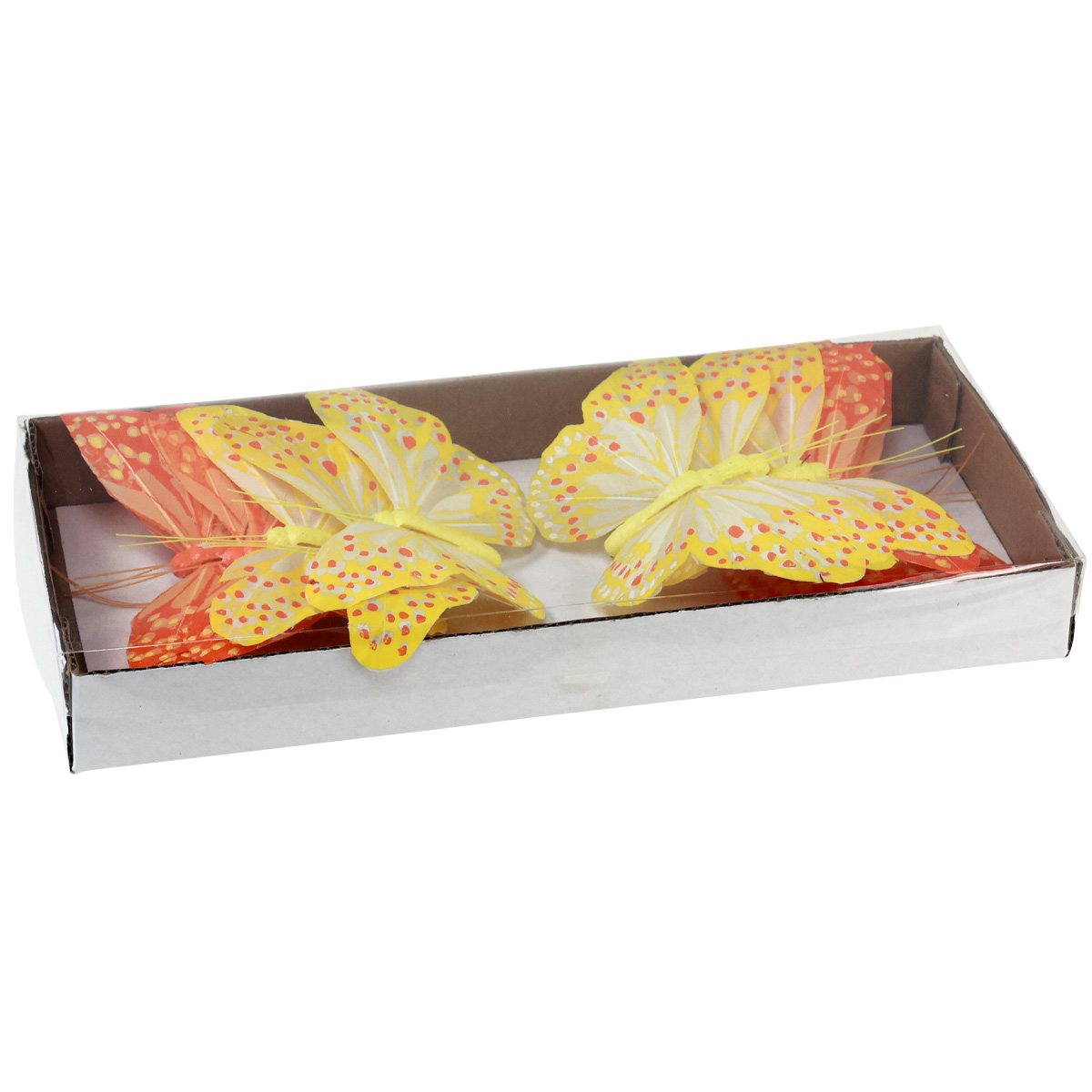 Produktname: Deko Schmetterlinge am Draht Federn Orange Gelb 7×11cm 12 St