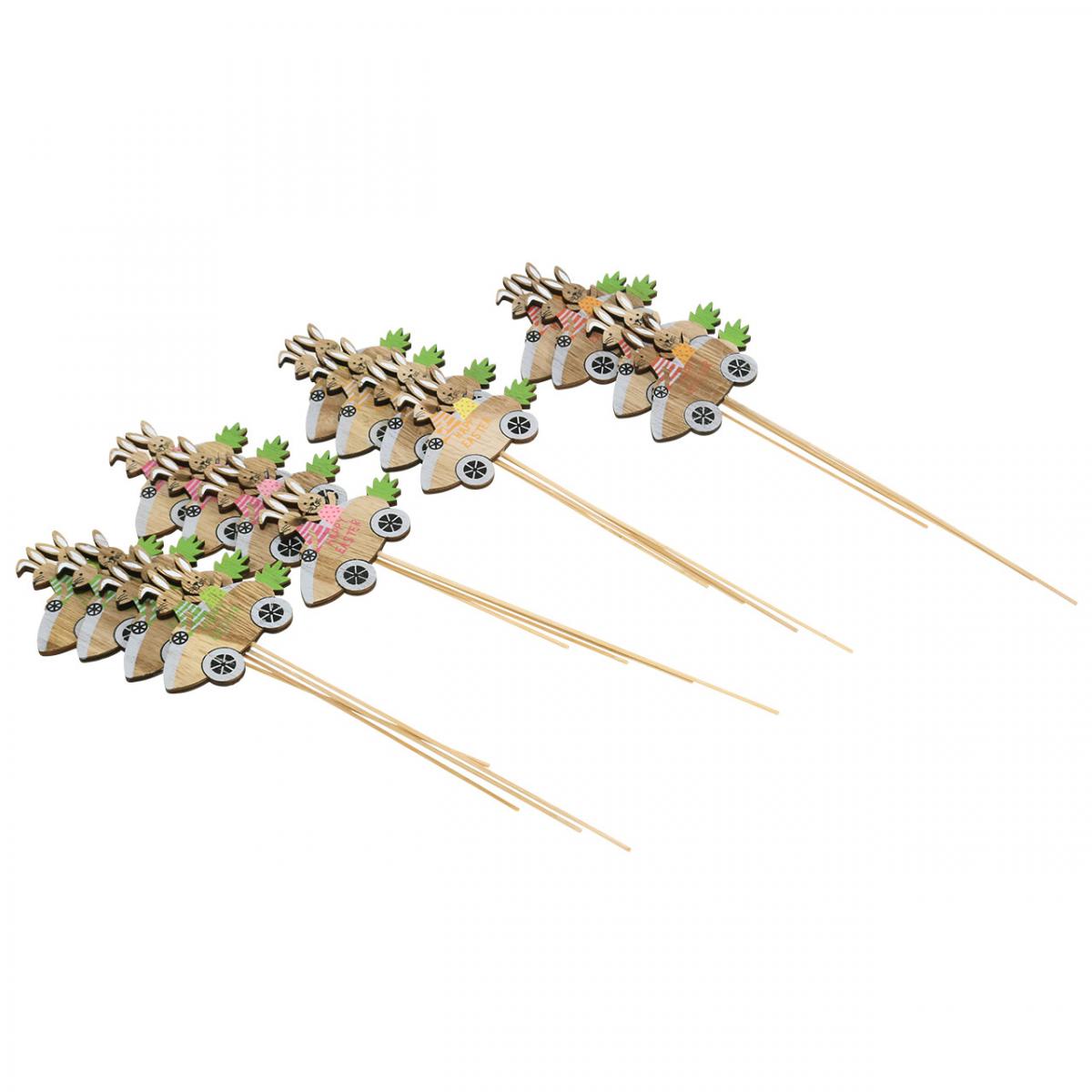 Bouchon décoratif lapin dans la voiture décoration de Pâques en bois carotte 9×7,5cm 16 pcs