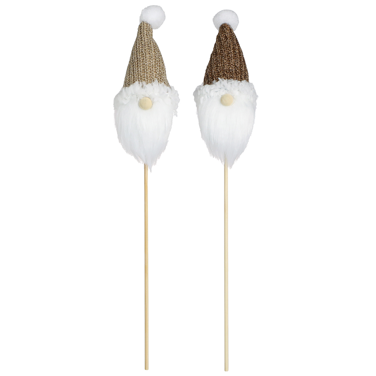 - 4 Dekostecker mit Wichtel in Weiß und Braun