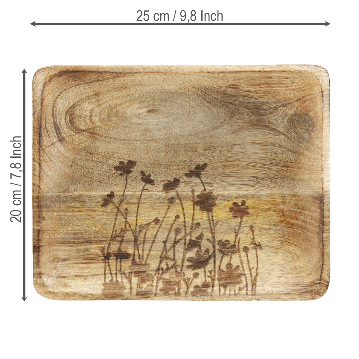 Dekotablett Mangoholz mit Blumenmuster Tablett 25×20cm