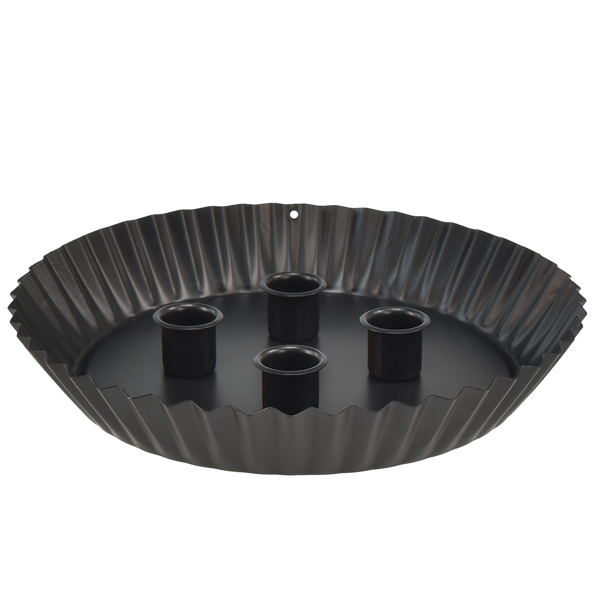 Produktname: Design-Stabkerzenhalter aus Metall in Kuchenform – Schwarz, Ø 24 cm – Elegante Tischdeko für 4 Kerzen – 2St