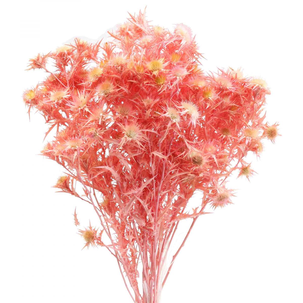 Una volta essiccato, questo cardo offre l'occasione ideale per creare mazzi di fiori secchi di lunga durata o per usarlo per idee decorative intelligenti. I rami decorativi in rosa antico alla moda danno a ogni composizione floreale quel qualcosa in più.I cardi hanno le loro caratteristiche foglie spinose. Le infiorescenze sono già spalancate e troneggiano sui lunghi e sottili steli e sulle foglie appuntite come piccole corone.