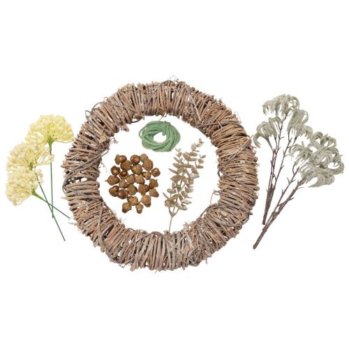 Alles in einer DIY-Box: Basteln Sie einen modernen Türkranz für den Advent mit ausgesuchten Kunstblumen und Naturdeko. Der Weihnachtskranz ist auch für Einsteiger ein tolles Komplett-Set!Frostig und stilvoll geht es zu bei dieser DIY-Idee: Der Eukalyptus, der aus einem modernen Weihnachtskranz kaum noch wegzudenken ist. Die Hortensien mit ihren wunderschönen Dolden wirken als Kunstblumen wie echt. Außerdem kommen auf den Türkranz künstliche Clematis und echte Eicheln. Der Türkranz für den Advent selbst ist ein Rebenkranz mit einem Durchmesser von 38 Zentimetern.