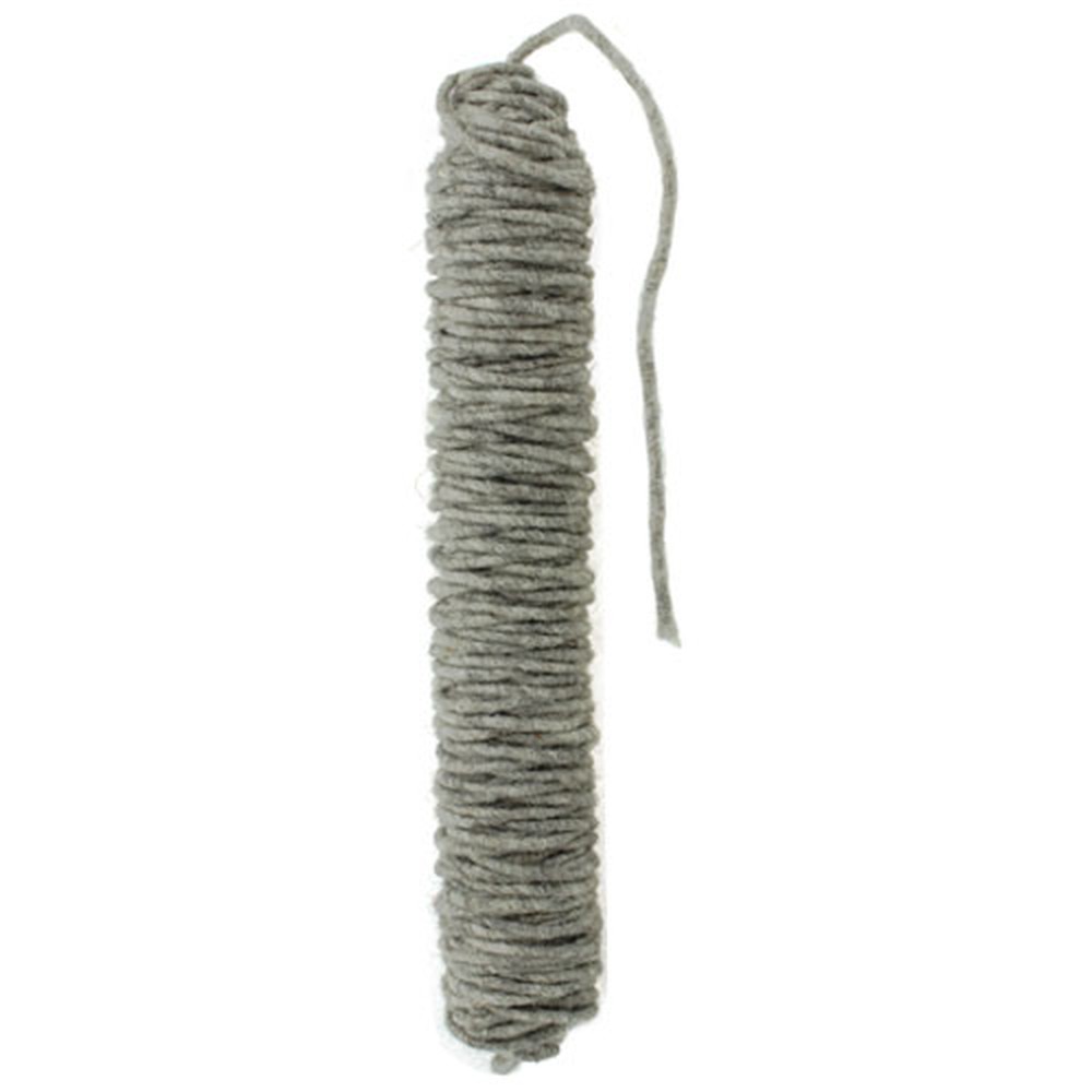Notre fil mèche gris est livré dans une petite boîte et a une longueur située aux alentours de 55 m. Le fil se compose à 20 % de jute à peu près et à 80 % environ de pure laine.