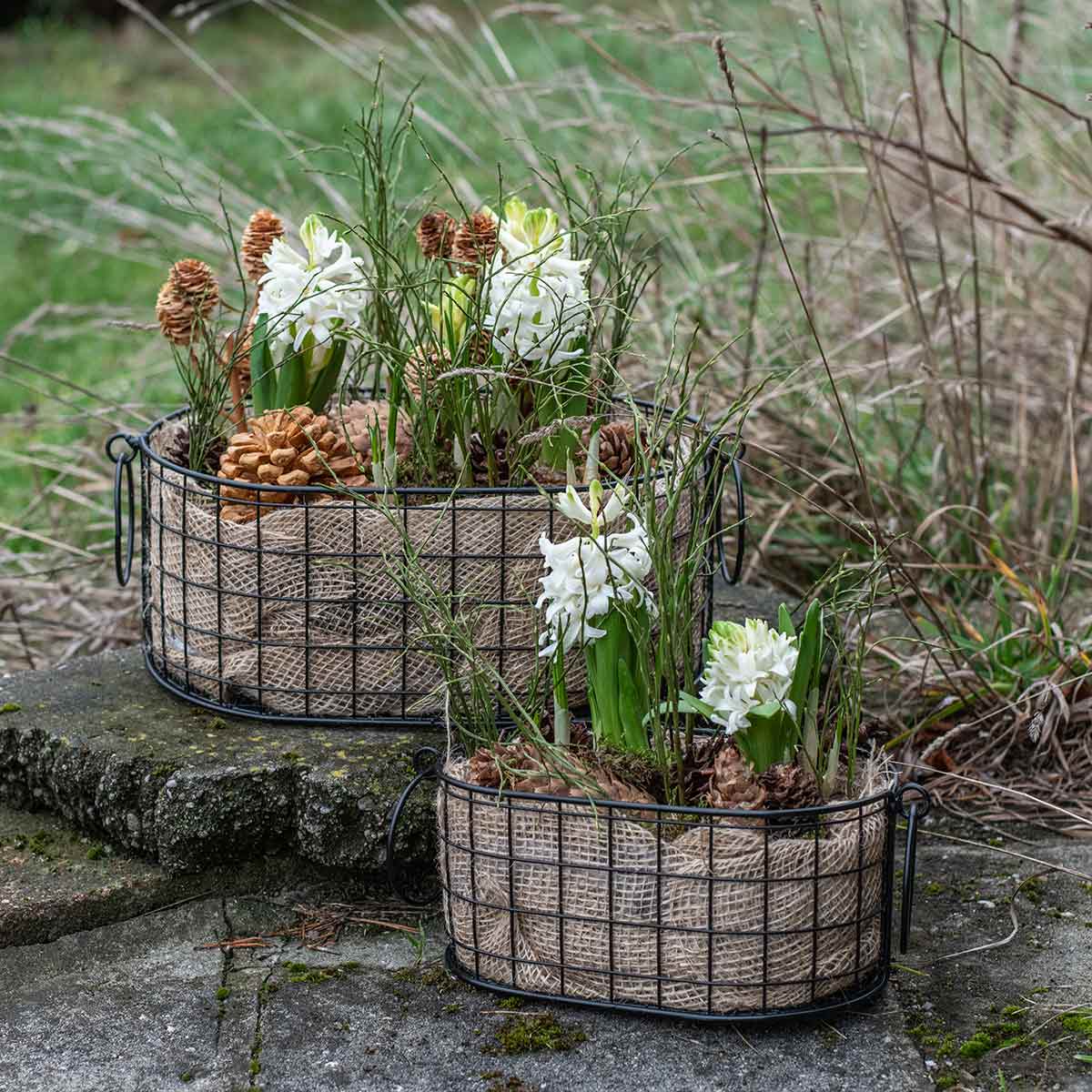 Le panier grillagé avec poignées offre de nombreuses façons de mettre en valeur vos plantes, compositions florales ou tendances déco.