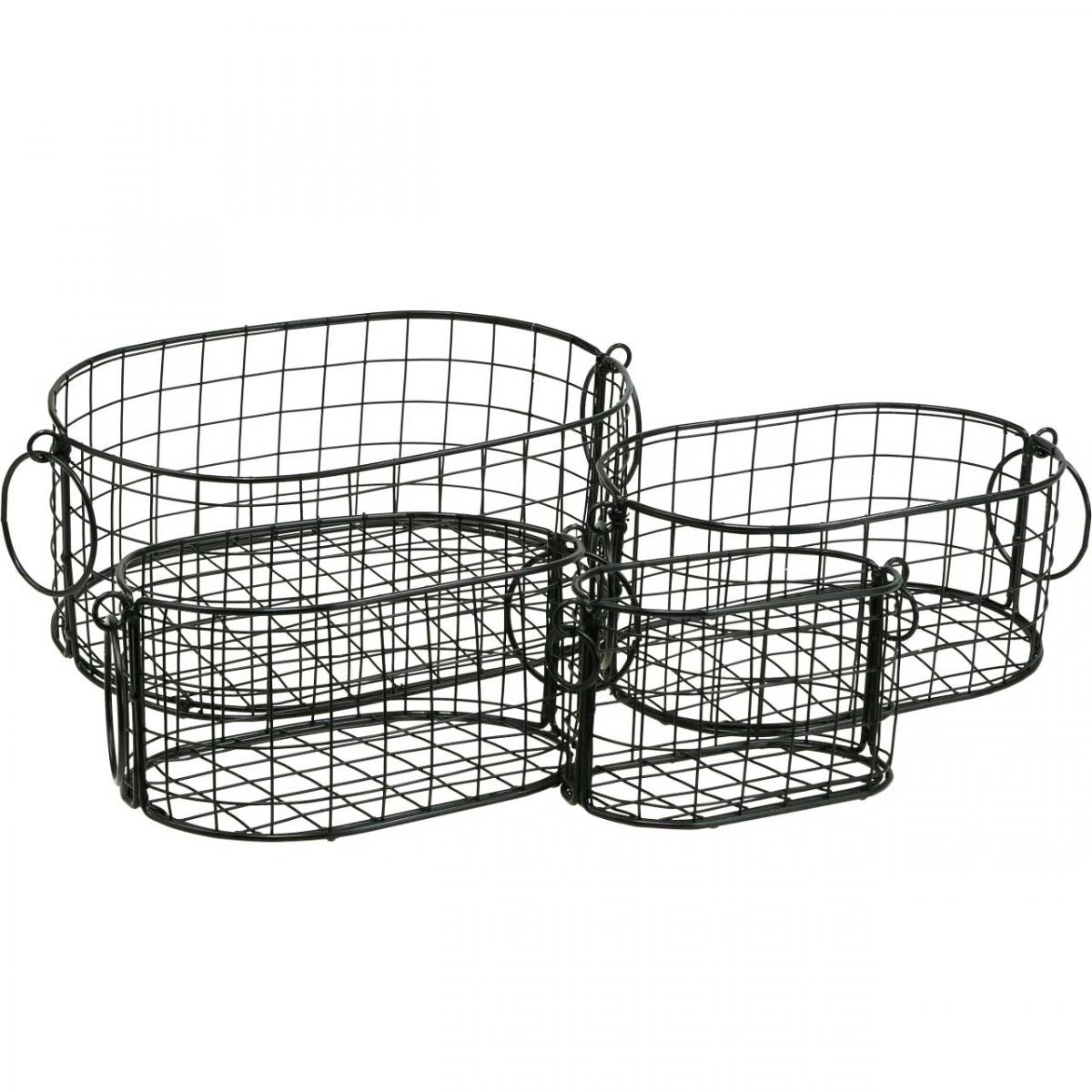 Cestino in filo metallico con manici in metallo nero 17-32 cm set da 4