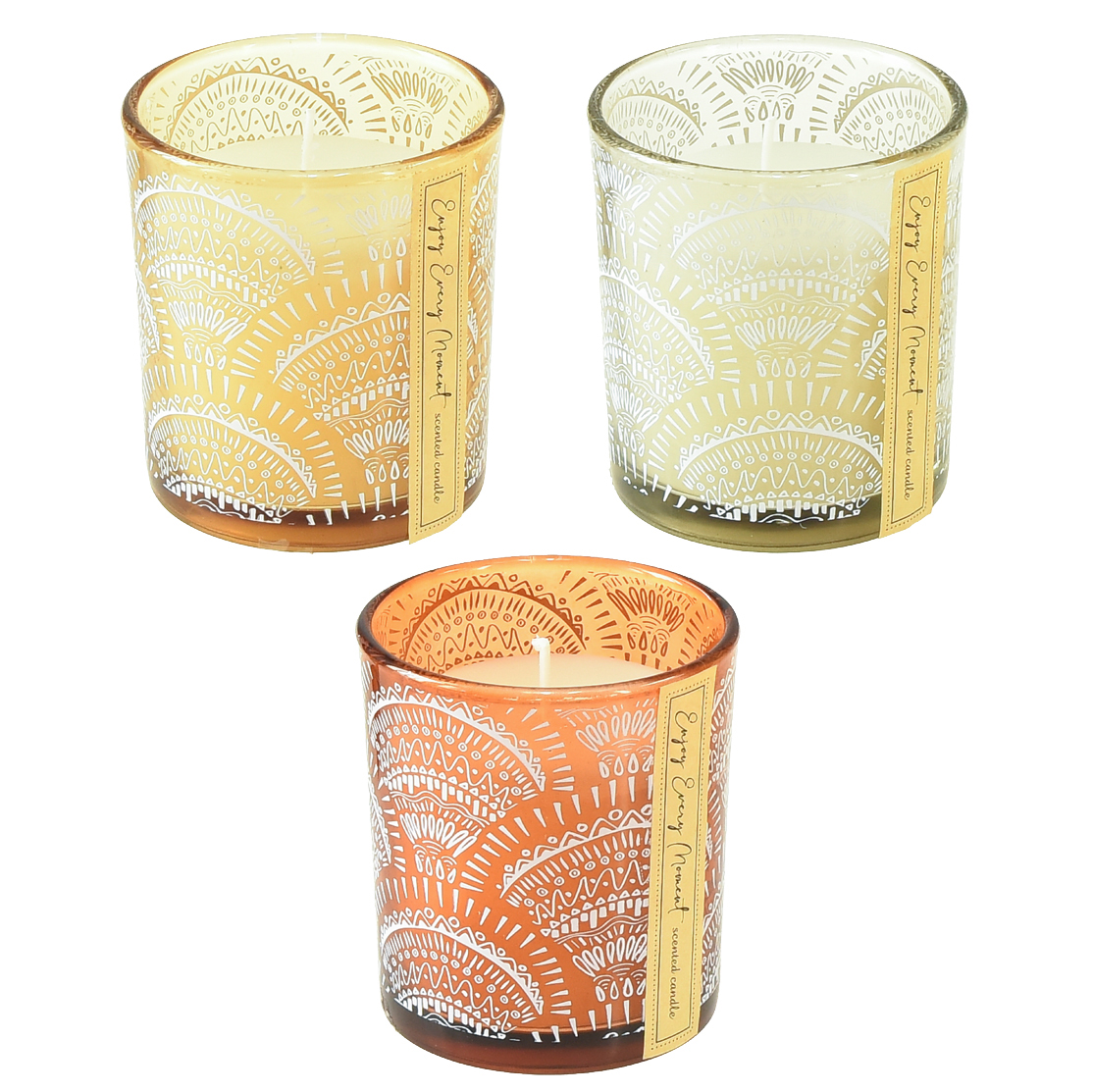 Ideal für kreative Menschen, Dekorateure und Floristen bieten unsere Kerzen zahlreiche Dekorationsmöglichkeiten. Die drei Kerzen versprechen langanhaltende Brenndauer und konstante Duftabgabe. Lassen Sie sich verzaubern von der Ausstrahlung dieser eleganten Duftkerzen im Glas, bereichern Sie Ihre Dekoration und schaffen Sie einladende Räume voller Wärme und Stil.