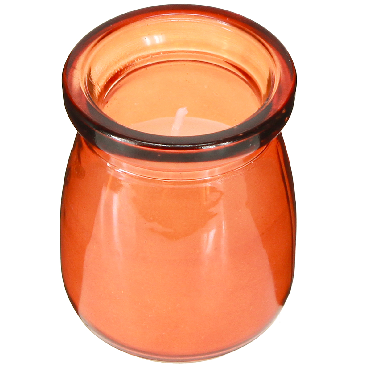 - Due candele profumate in un barattolo di vetro in diversi colori: arancione e rosa