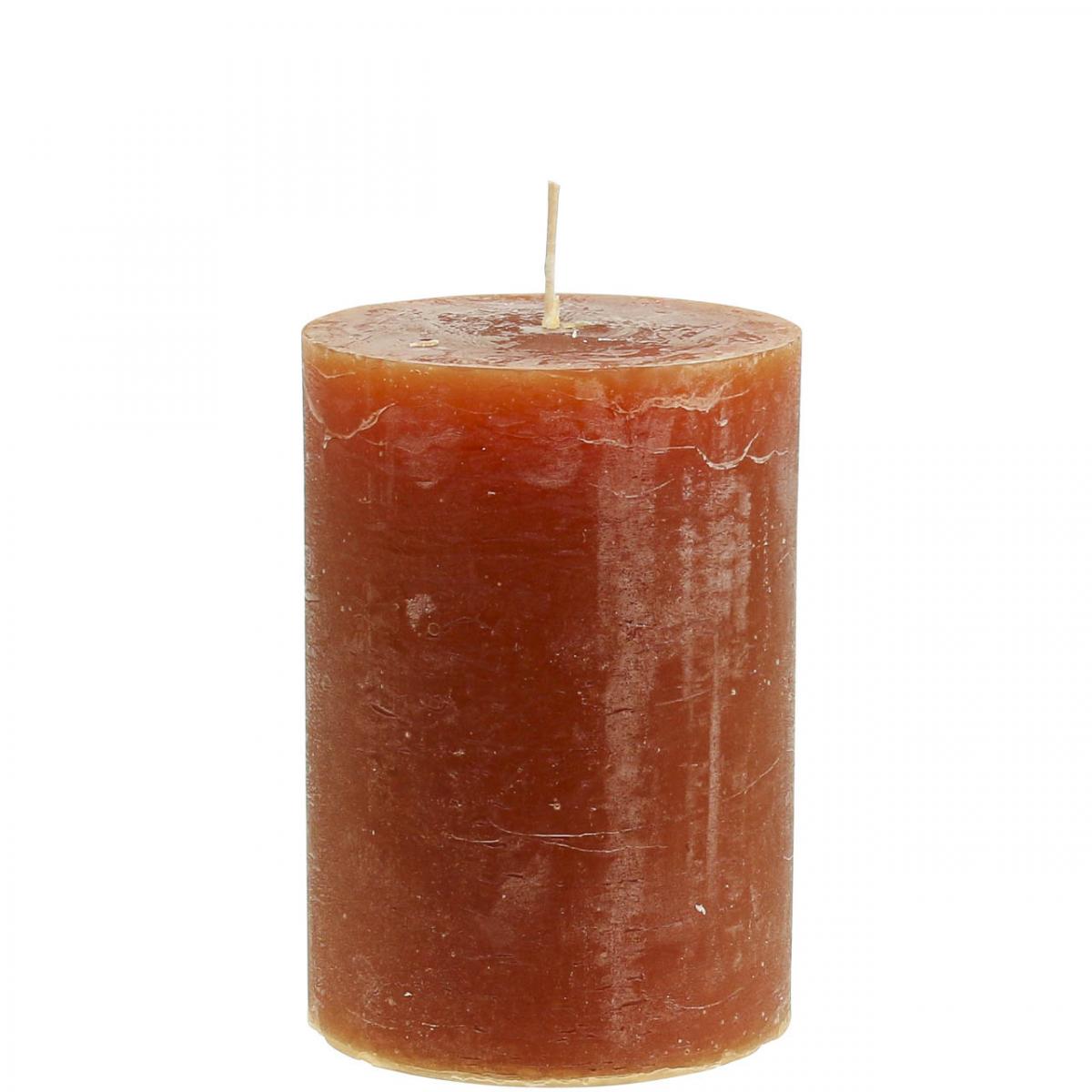 Candele rustiche a colonna, marrone-rossastro, 85×120 mm, set da 2 - lunga durata di combustione