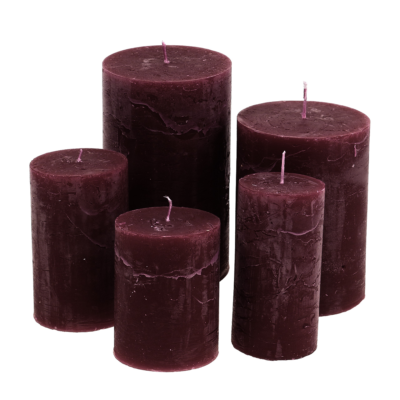Durchgefärbte Kerzen Burgund unterschiedliche Größen