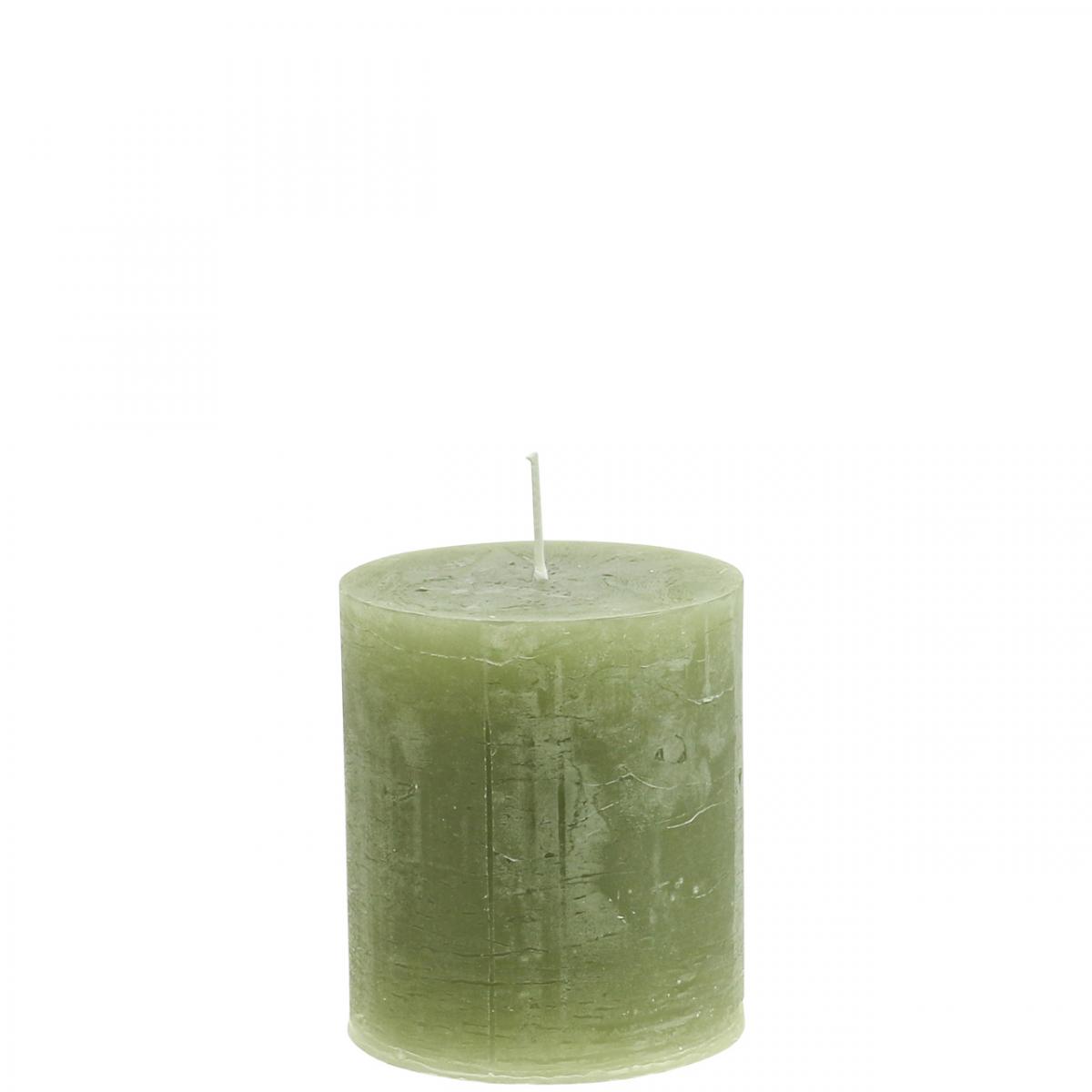 Bougies piliers rustiques, couleur vert olive unie, 70 x 80 mm, lot de 4, bougies décoratives, bougies en cire