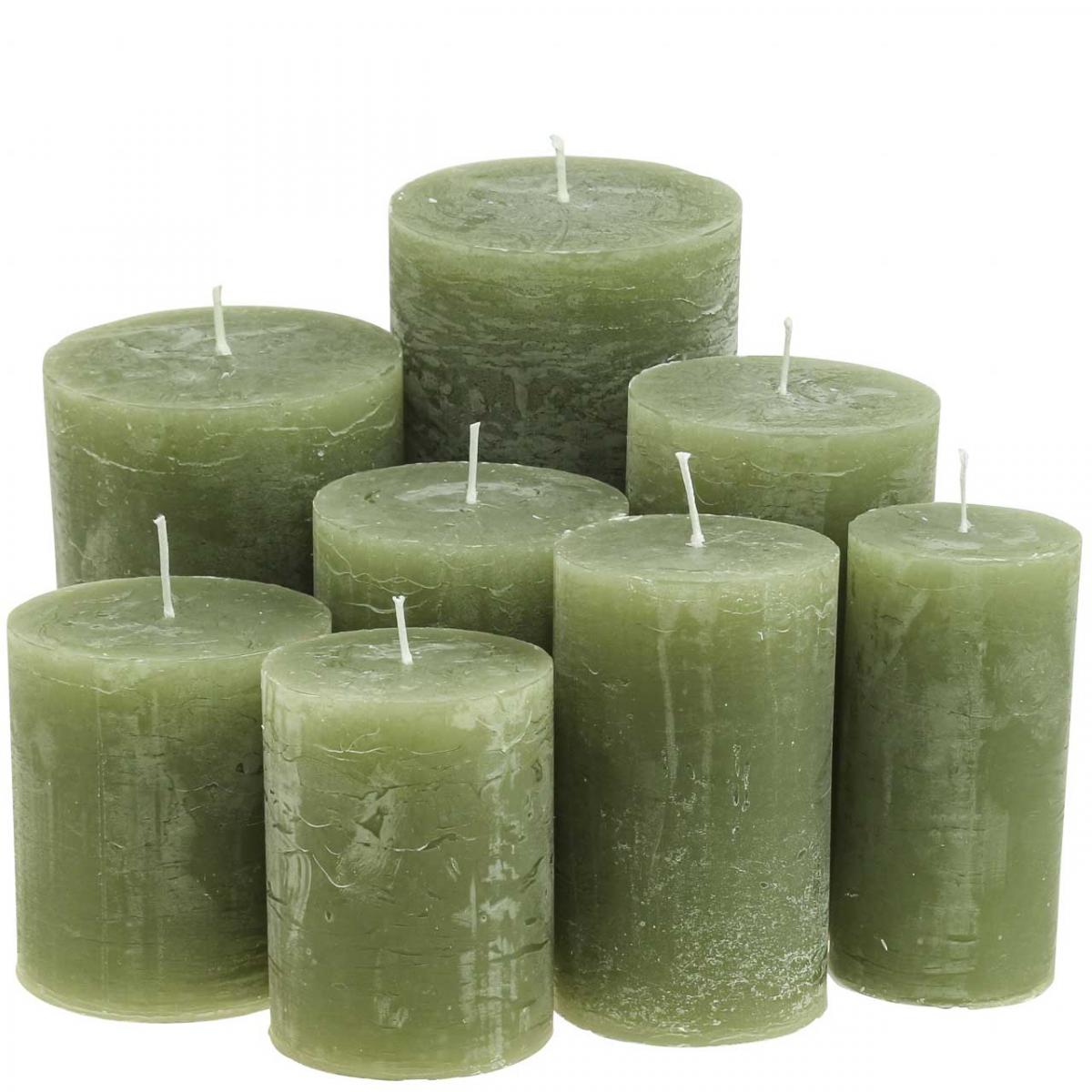 Bougies de couleur unie vert olive différentes tailles
