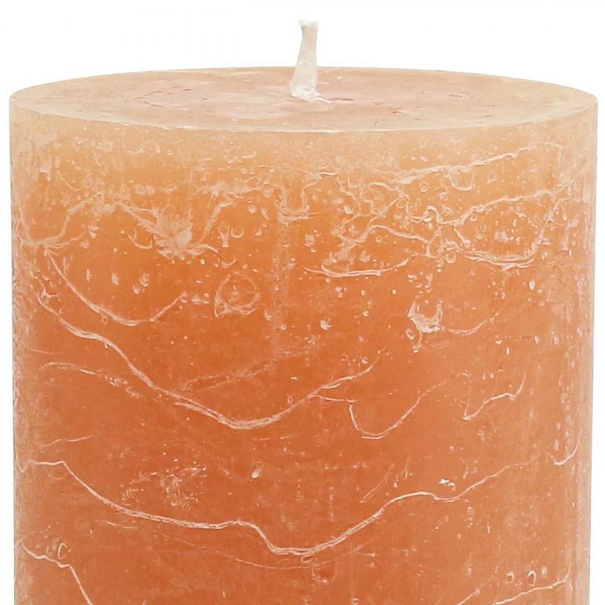 Produktname: Durchgefärbte Stumpenkerzen Orange Peach, 85×150mm, 2er Set, Lange Brenndauer, Dekokerzen
