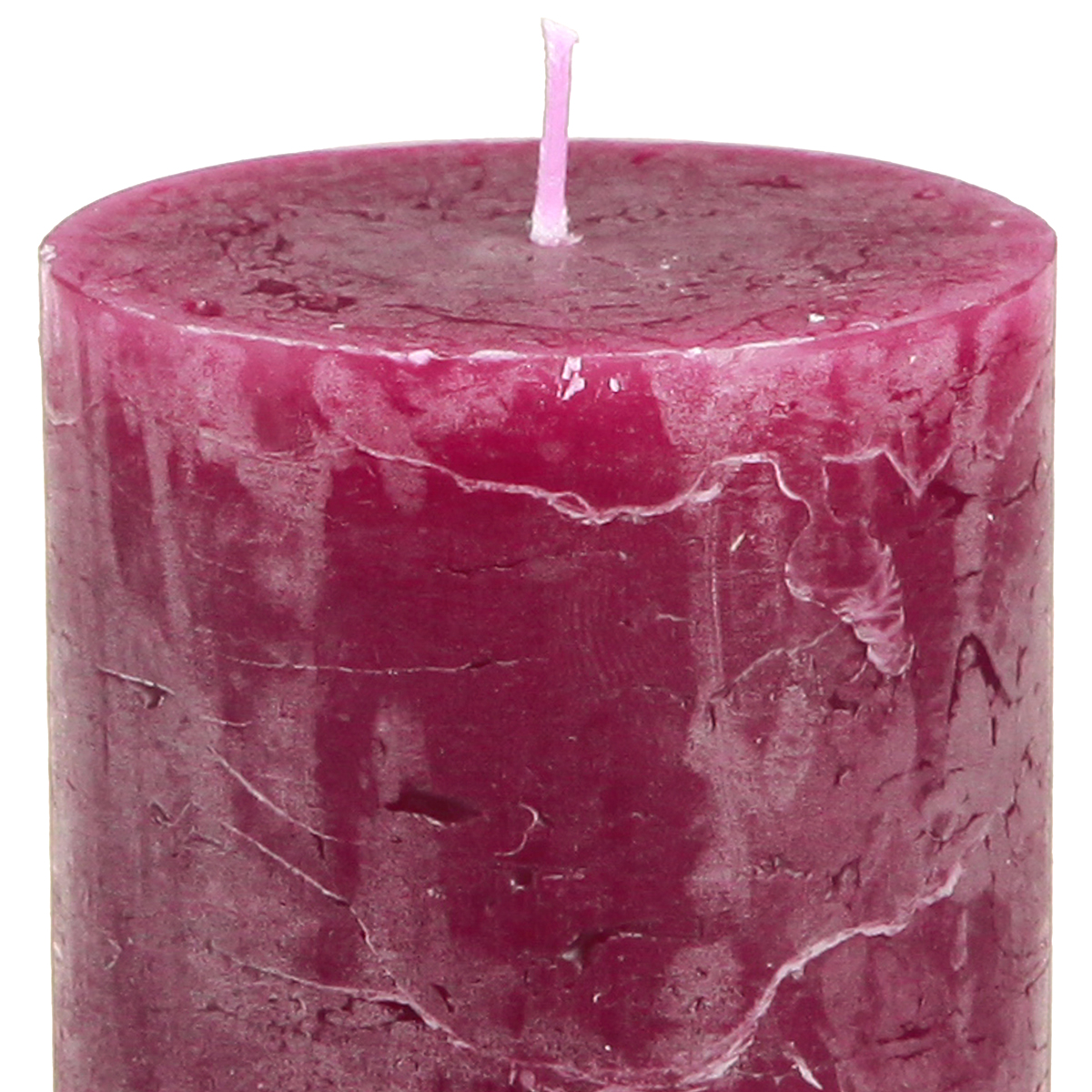 Unsere durchgefärbten Kerzen fügen sich nahtlos in jede moderne oder klassische Wohnzimmerdekoration ein. Ein Hauch von Luxus umgibt die farbigen Stumpenkerzen 60x100mm, die mit ihrer rustikalen Oberfläche und den harmonisch aufeinander abgestimmten Beerenfarbtönen Gemütlichkeit ausstrahlen. Jedes der hochwertigen Stumpenkerzen birgt eine eigene Persönlichkeit und schafft zugleich eine stimmige Einheit, ideal für romantische Abende oder eine festliche Tischgestaltung.