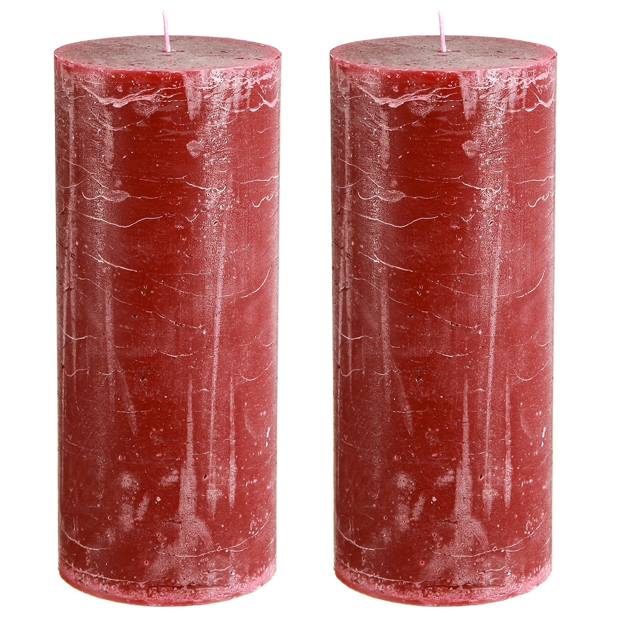 Candele a colonna rosso scuro effetto marmo, 85x200 mm, set da 2 – lunga durata di combustione per romanticismo e festività