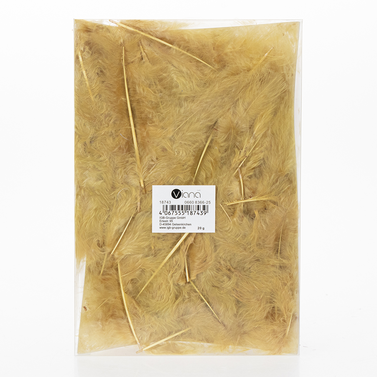 Plumes véritables pour loisirs créatifs, jaune clair, 5 à 10 cm, 20 g