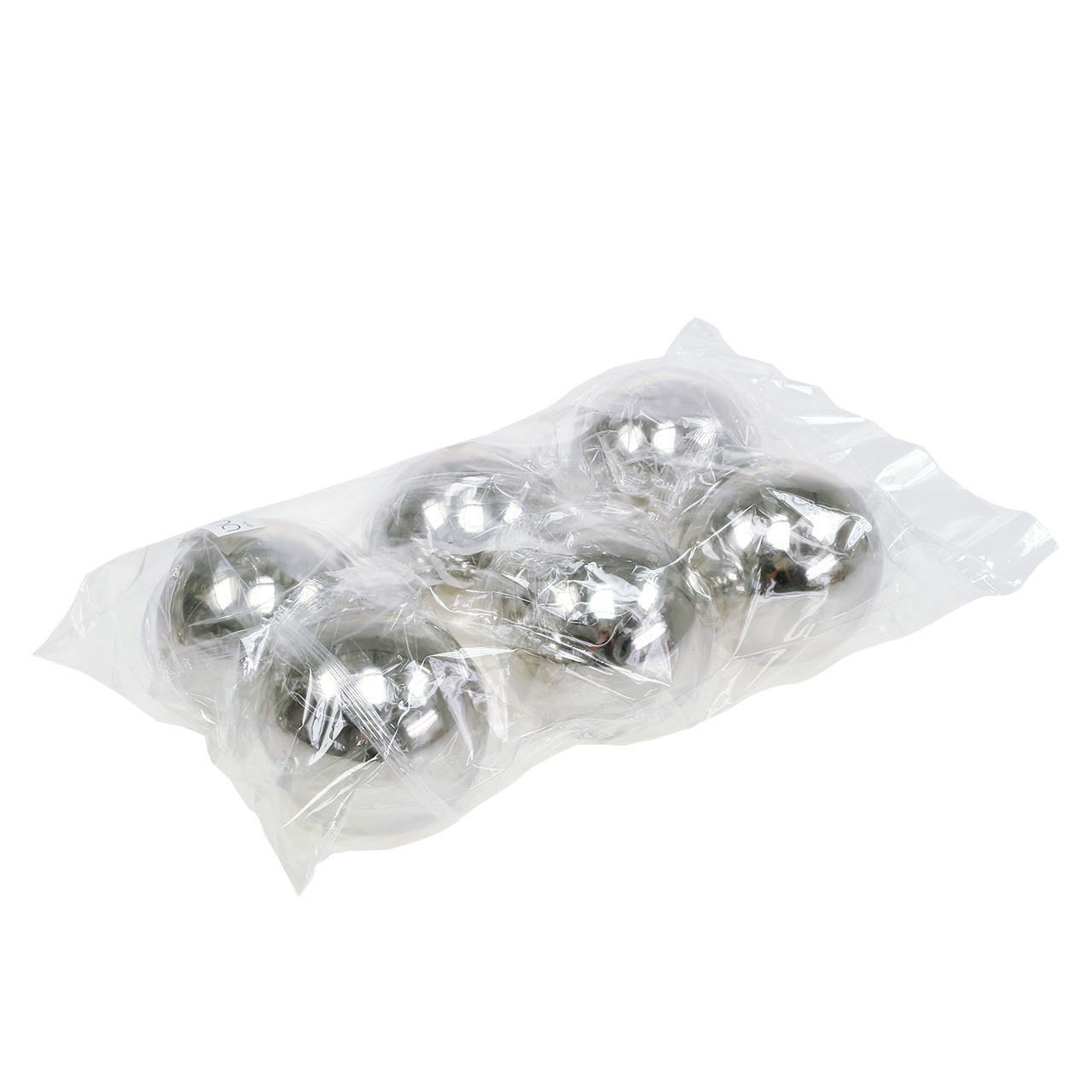 La livraison de nos 6 boules décoratives en inox stylées s'effectue dans un emballage en plastique. Le diamètre de chaque boule est de 8 cm environ.