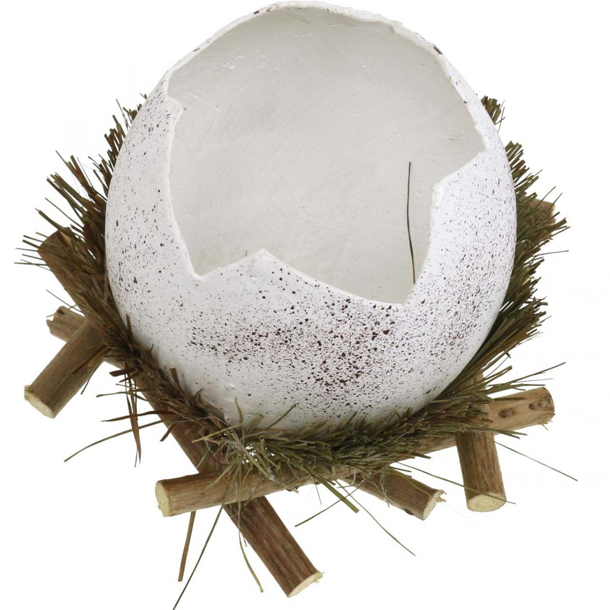 Decorazione pasquale, uovo in un nido, uovo decorativo, nido d'uccello Ø9cm H10cm Bianco, colori naturali 4 pezzi