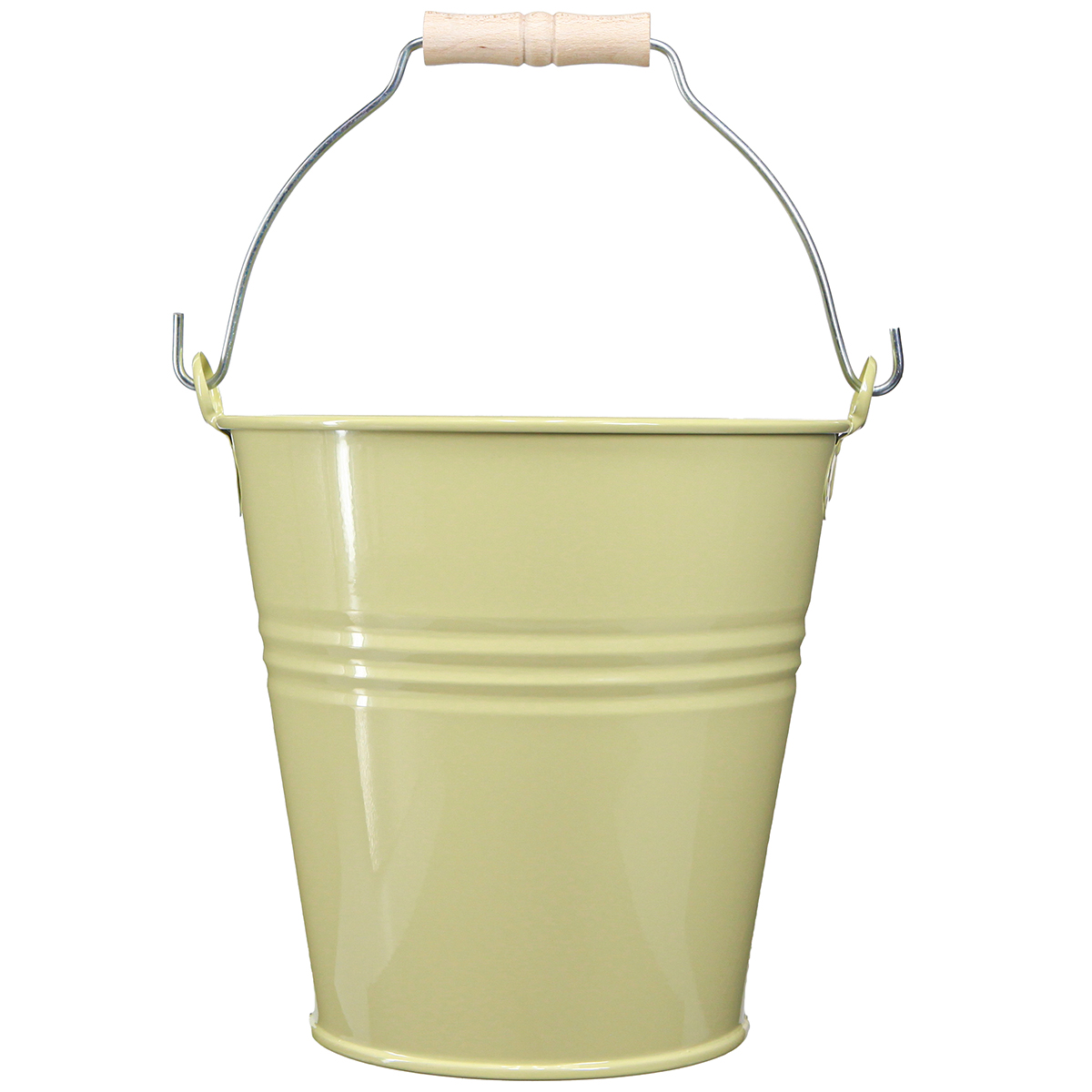 - Grüngelber Dekoeimer aus Metall im Landhaus-Stil