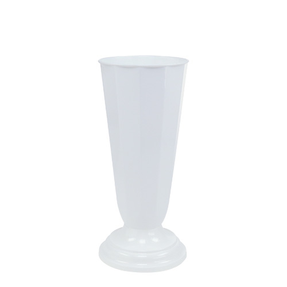 Les bouquets de taille petite à moyenne peuvent être magnifiquement présentés dans le vase chic "Szwed" en blanc. Il combine un design pratique avec une élégance discrète, en faisant ressortir des fleurs colorées avec une surface blanche brillante et des rayures verticales. Fabriqué en plastique léger et robuste et équipé d'un pied amovible, il est également facile à déplacer et à transporter.Le vase déco tendance, par exemple, vous offre un moyen élégant d’exposer vos fleurs coupées lors de vos déplacements, par exemple sur un marché ou une foire commerciale. La grande ouverture d’un diamètre d’environ 13 centimètres est particulièrement utile. Le diamètre total en haut est d’environ 14 centimètres et en bas d’environ 8 centimètres. Sans pied, le vase à fleur mesure environ 26,5 centimètres et une hauteur totale d'environ 30 centimètres.