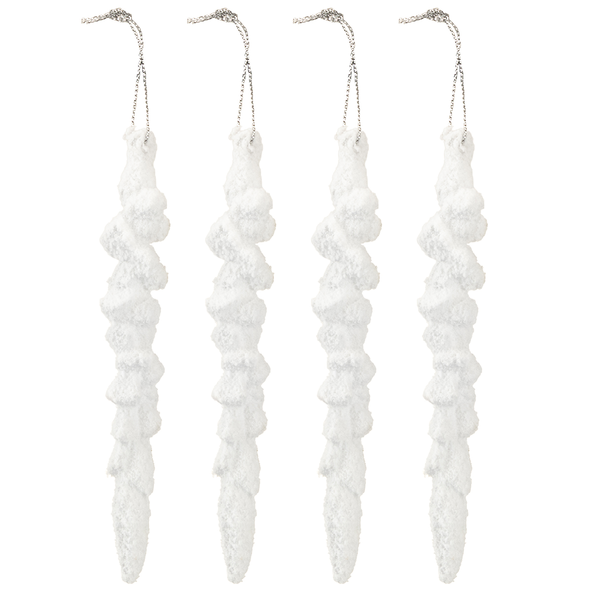 Decorazione a forma di ghiacciolo, decorazione per albero di Natale innevato, 14 cm, 4 pezzi
