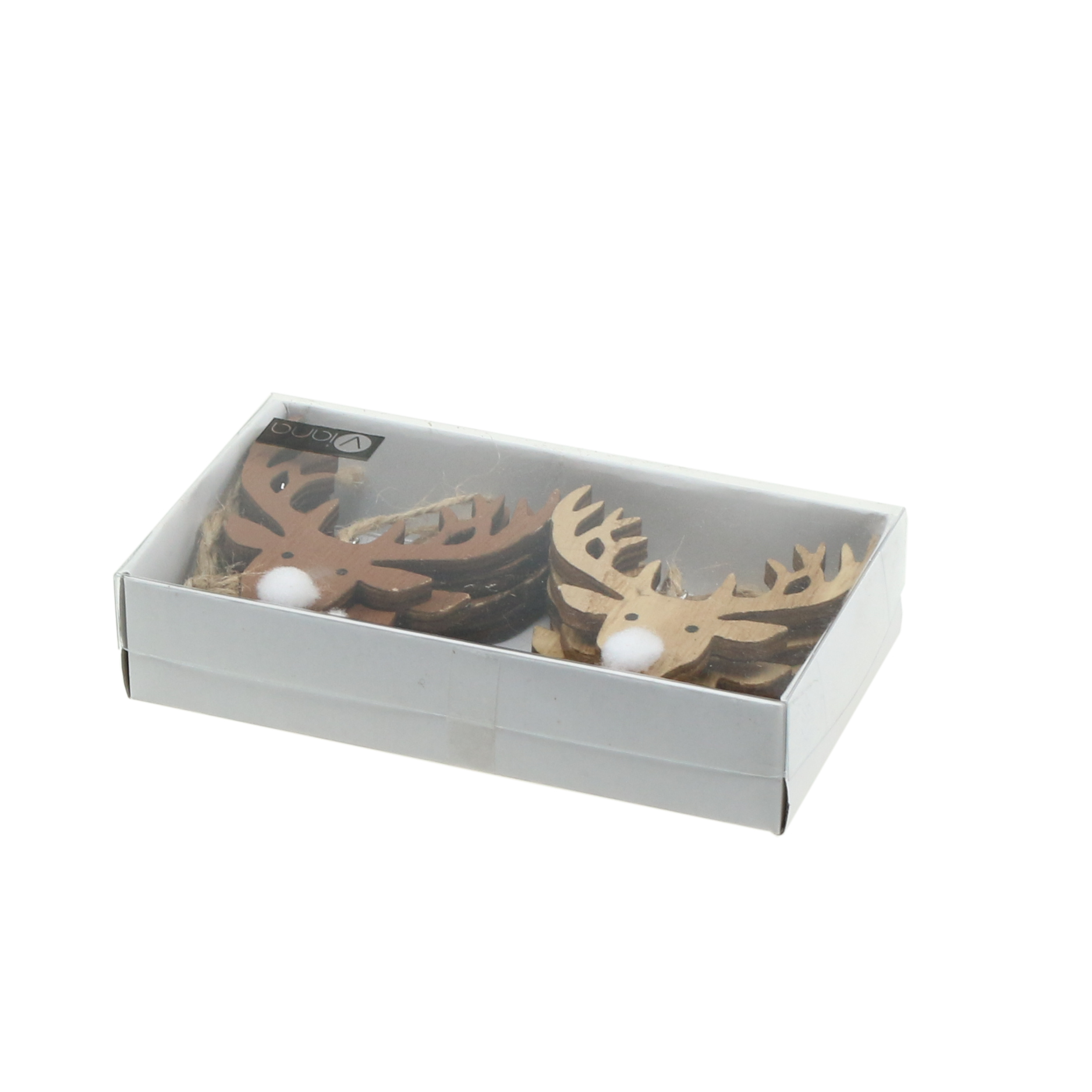Suspension tête d’élan pour sapin de Noël Bois Marron, nature 6,5 x 7cm 8pcs