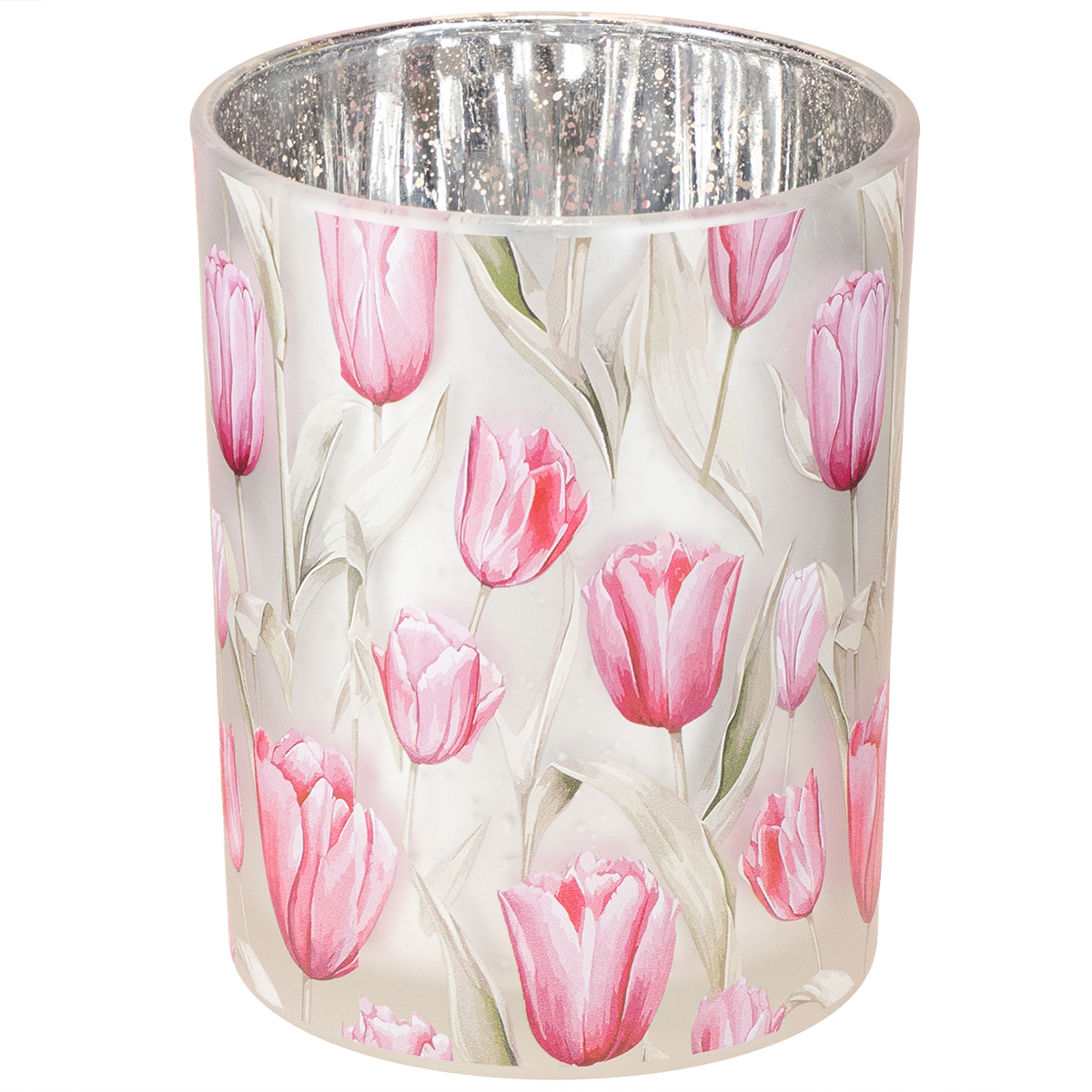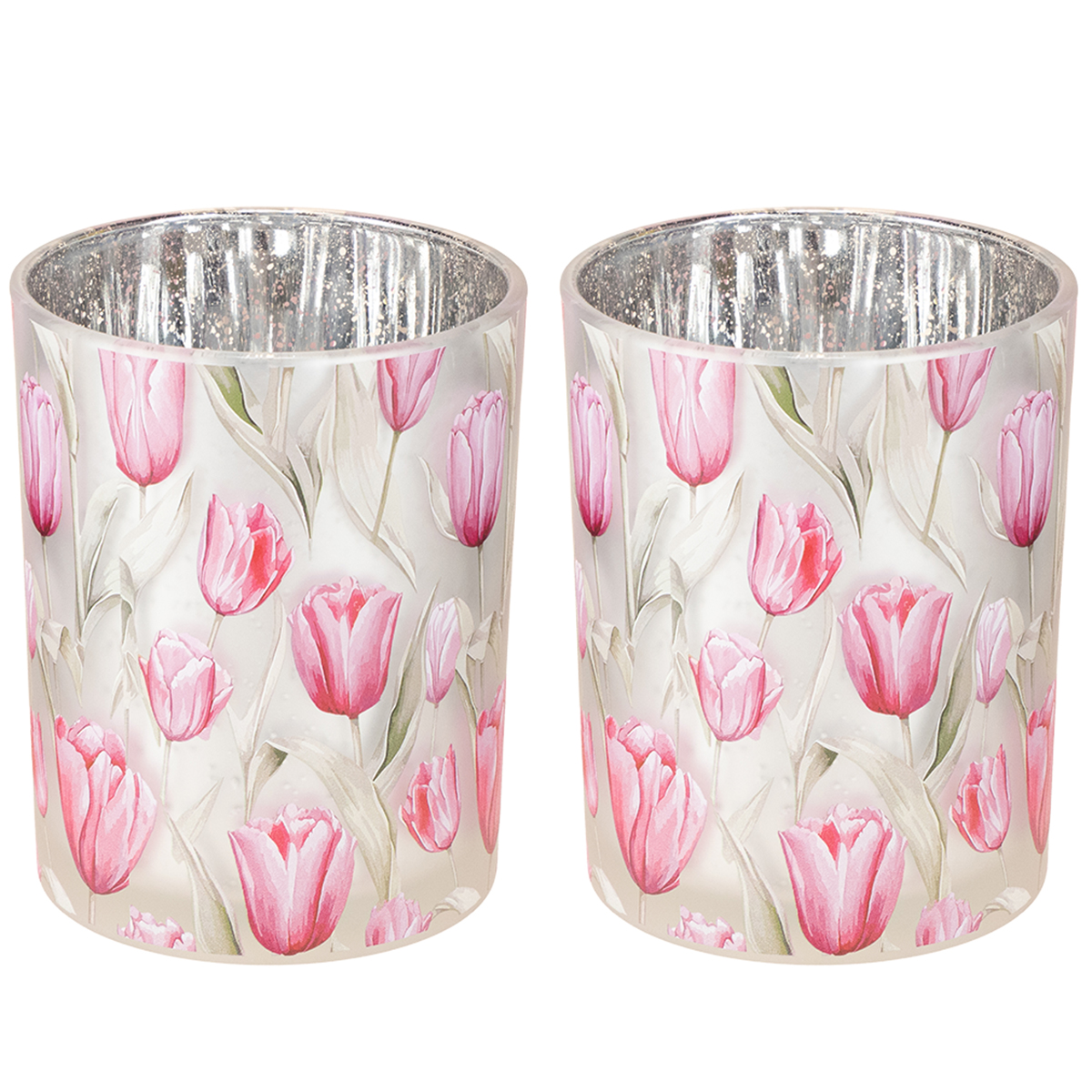 Elegantes Windlicht mit Tulpenmotiv für stimmungsvolle Frühlingsdekoration 12,5cm 2St.