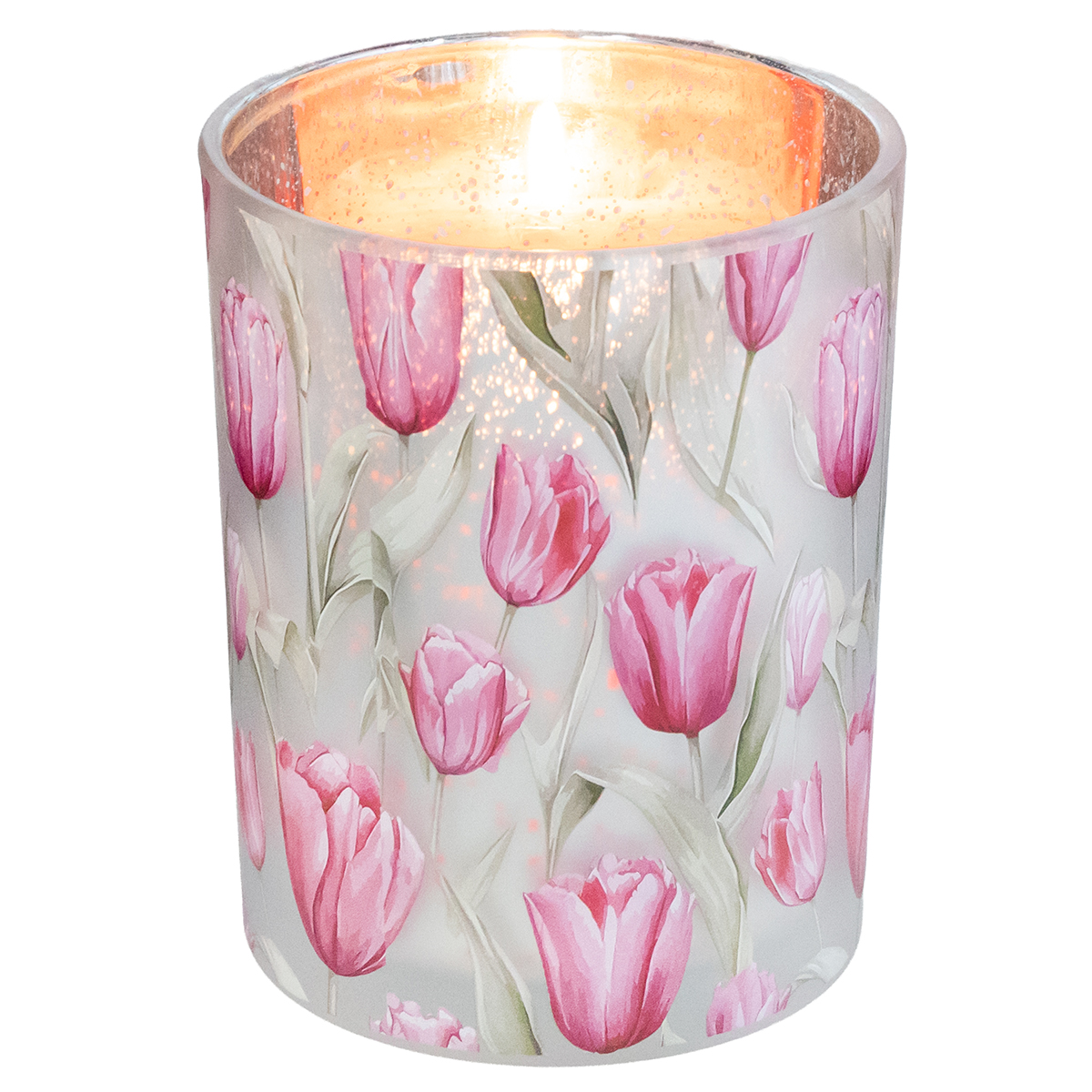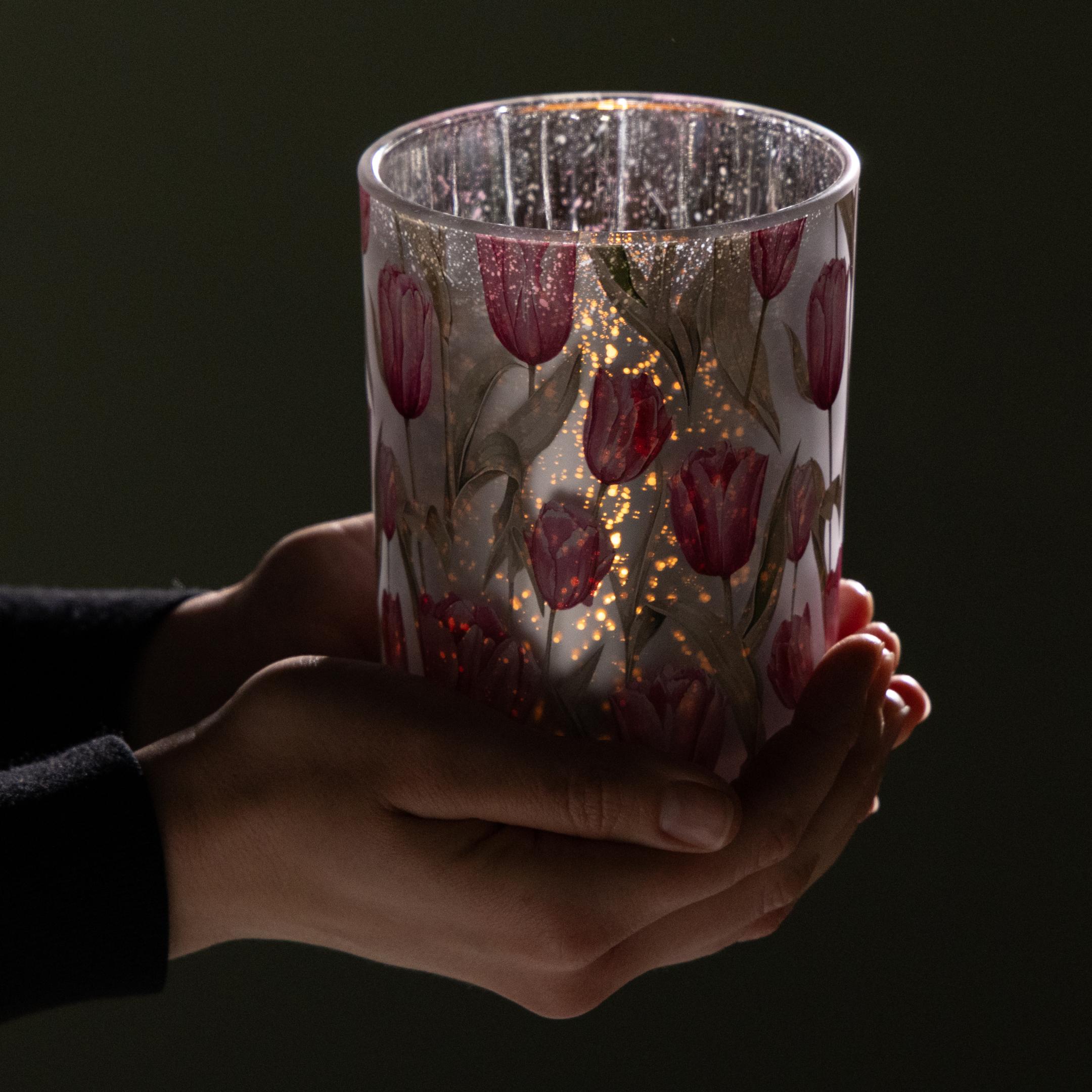 Frühlingsliches Windlicht mit elegantem Tulpenmotiv für vielseitigen Einsatz