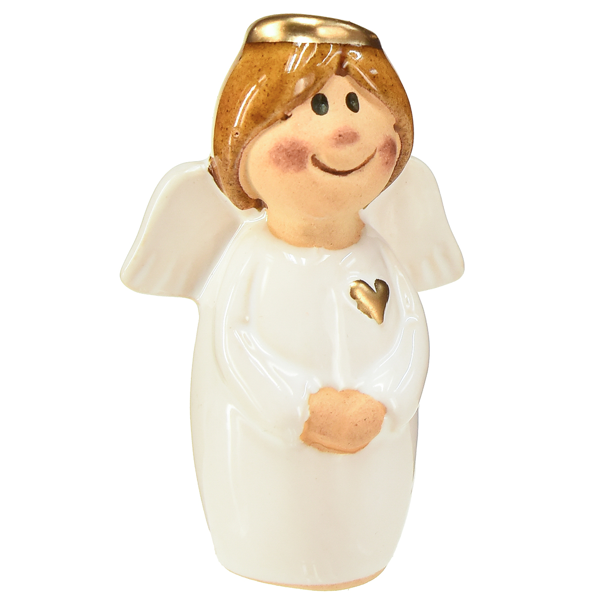 - Figura di angelo in ceramica 7 cm con cuore dorato sul petto