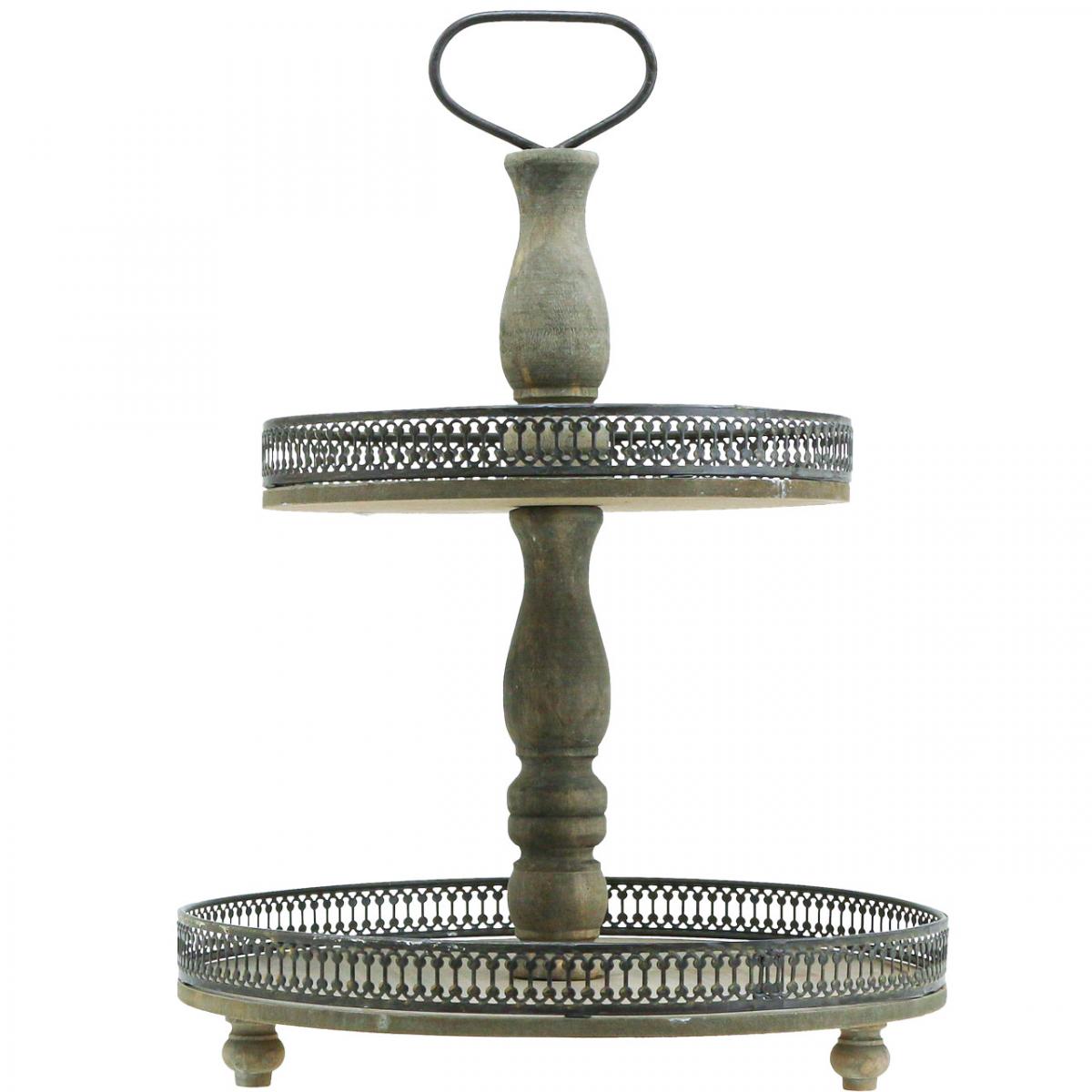 Alzata per torte Deco Alzata per torte con piante in legno Vintage H47cm Ø34cm