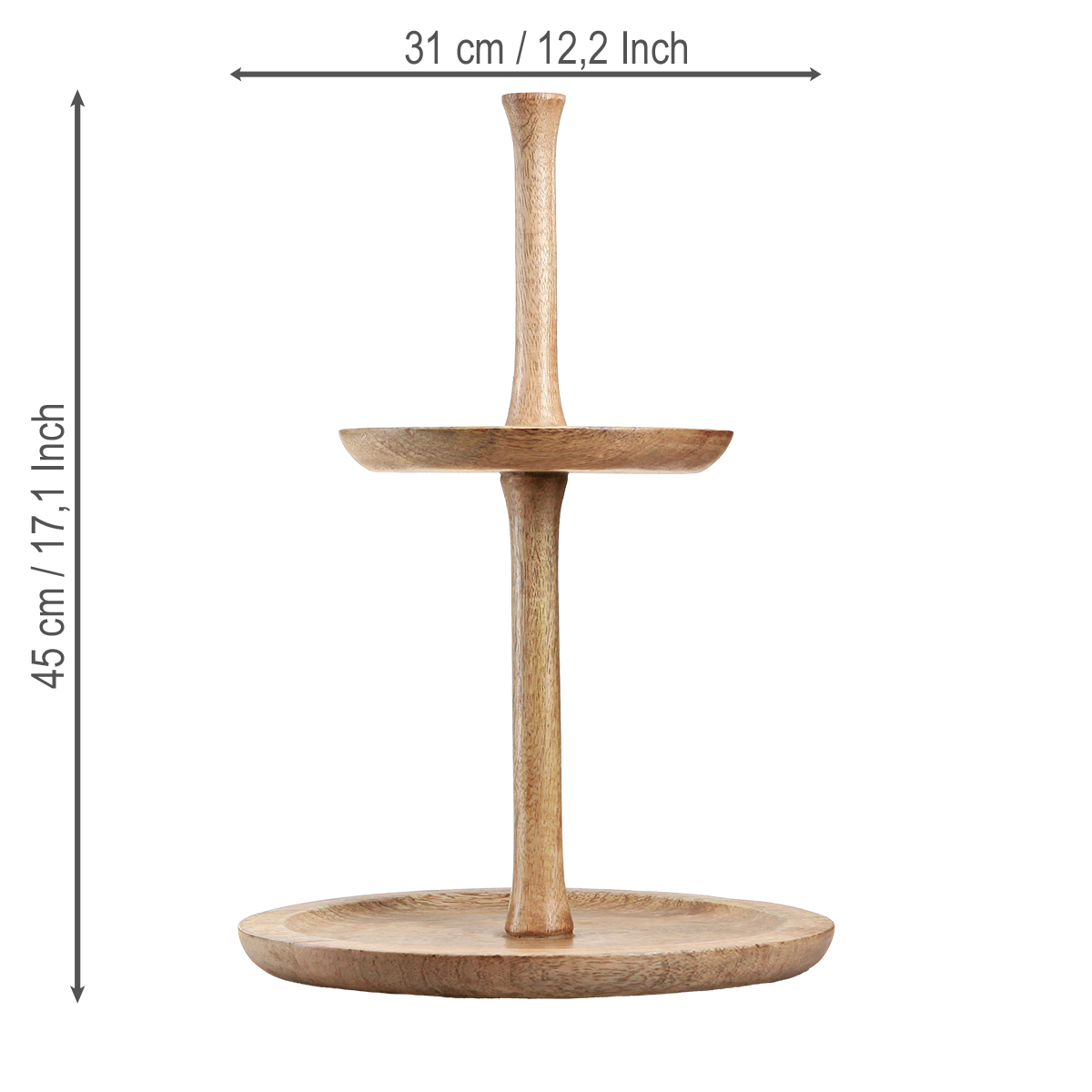 Etagere Holz Deko 2-stöckig Natur Rund Ø31/20cm H45cm