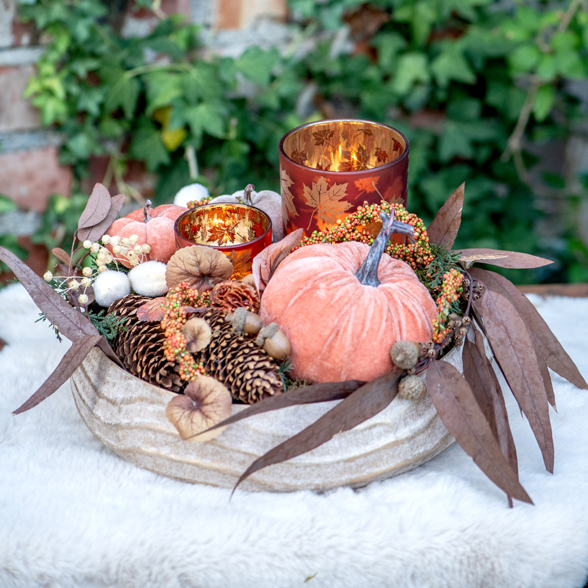 Materialien: Naturmaterialien wie Zapfen, Holz, Rinde, Moos, Zweige, Blätter, Trockenblumen, Seegras und Kokosfasern.