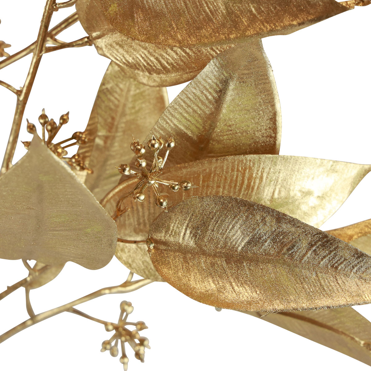 L'eucalipto artificiale porta lancette e frutti. Multi ramificato e colorato in oro, questo ramo di eucalipto è una meravigliosa pianta artificiale per Natale.Le foglie strette e ovali di questo eucalipto artificiale sono delicate e delicate. A causa della forma appuntita, le foglie sono anche chiamate lancette. Le nervature superiori della foglia sono estremamente sottili, mentre le forti nervature inferiori sostengono la foglia. Inoltre, vicino ad ogni foglia scoprirai i frutti sferici disposti a stella. I tre rami che si diramano dal ramo principale, che si diramano di nuovo, sono pieni delle tante foglie e frutti.