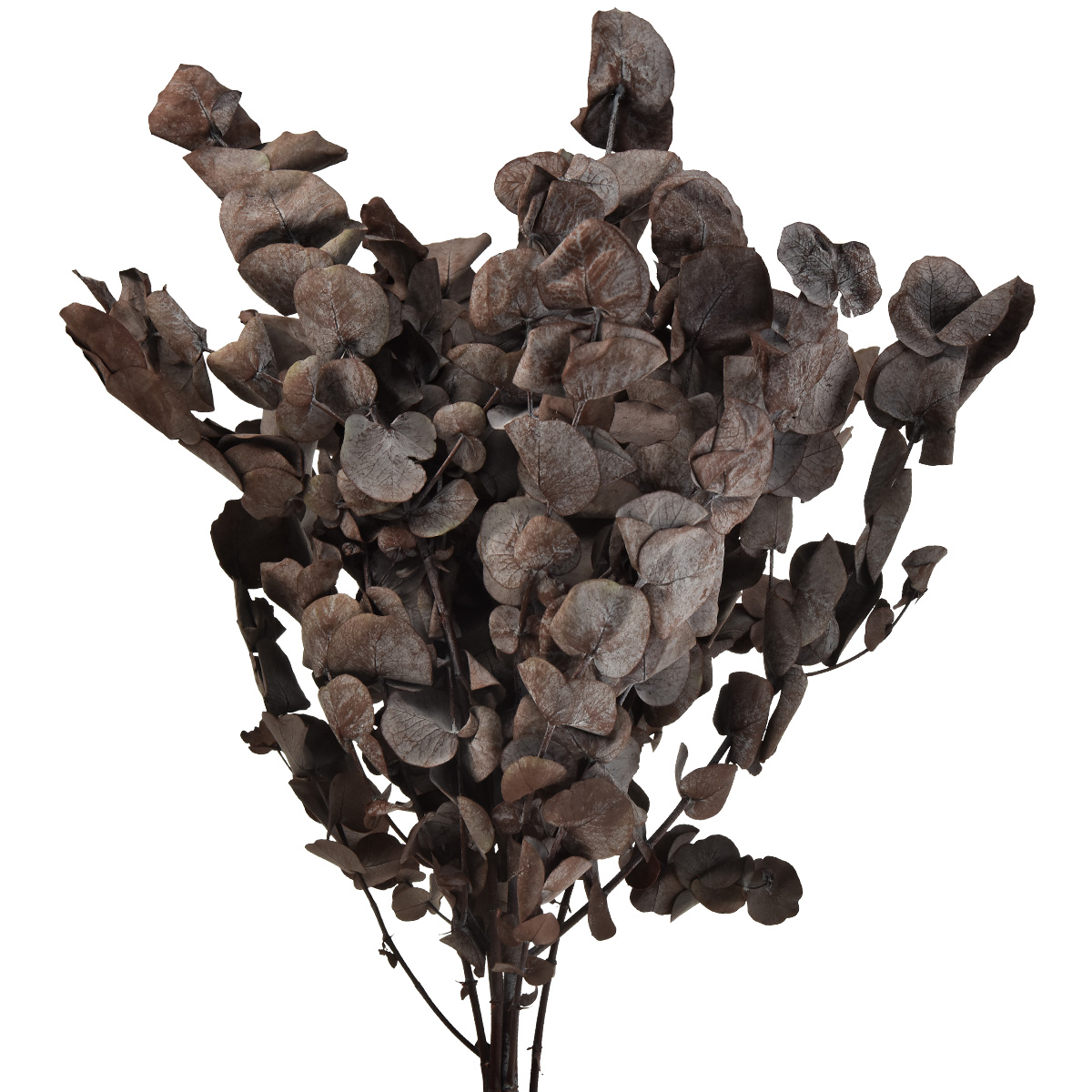 Die Eukalyptus-Blätter haben einen feinen Rotstich und auch die Zweige zeigen diese Röte, was die Natur-Deko besonders attraktiv macht. Die Blätter sind typisch in einer breiten ovalen Form gewachsen und paarig angeordnet.