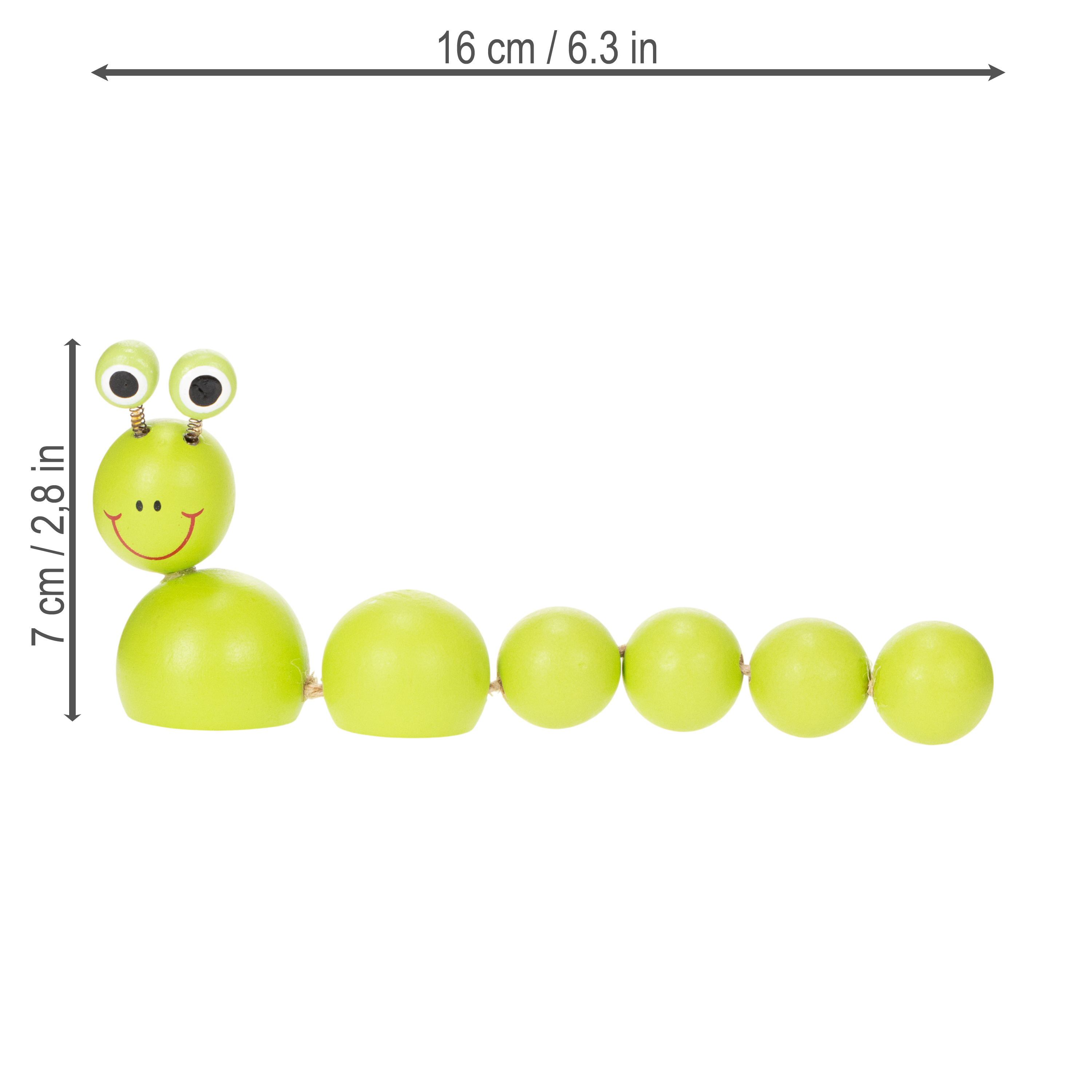 Con un'ammiccante giocosità e un verde brillante, questa decorazione a forma di bruco porta gioia e un tocco di natura nella tua casa! Hai mai pensato a quanto sia semplice ravvivare una stanza con facilità? Questi sei bruchi decorativi in legno, lunghi 16 centimetri ciascuno, aggiungono fascino a davanzali, librerie o stanze dei giochi. Giocosi e creativi allo stesso tempo, e assolutamente di alta qualità e resistenti. Perfetti per chi desidera arricchire il proprio spazio abitativo con un allegro elemento di richiamo visivo senza rinunciare alla naturalezza. I colorati bruchi in legno colpiscono per il loro design affascinante e si integrano armoniosamente in una varietà di stili d'arredo, dal moderno design scandinavo all'accogliente stile country.