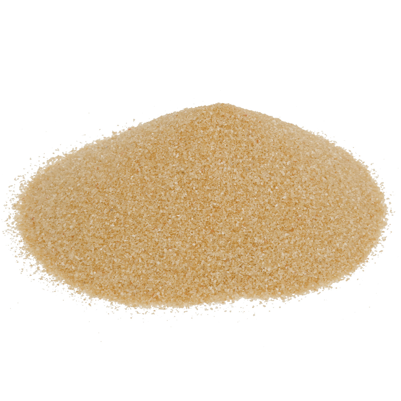 Von dem cremefarbenen Farbsand erhalten Sie gleich 2 Kilogramm in einer Kunststoff-Verpackung. Die Korngröße beträgt ungefähr 0,5 Millimeter.