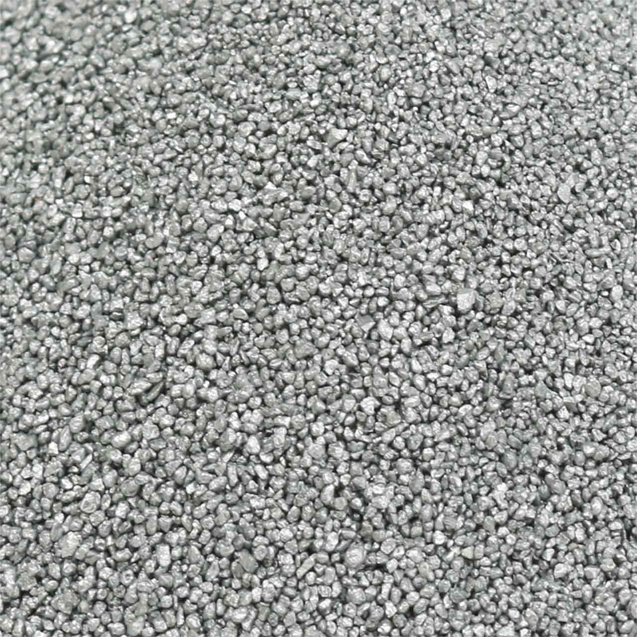 Riceverai 2 chilogrammi di sabbia color argento con una granulometria di circa 0,5 millimetri in una confezione di plastica.