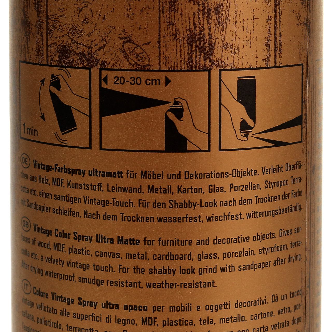 Sie erhalten 400 Milliliter des altgoldenen Vintage-Farbsprays in einer praktischen Überkopfspraydose.