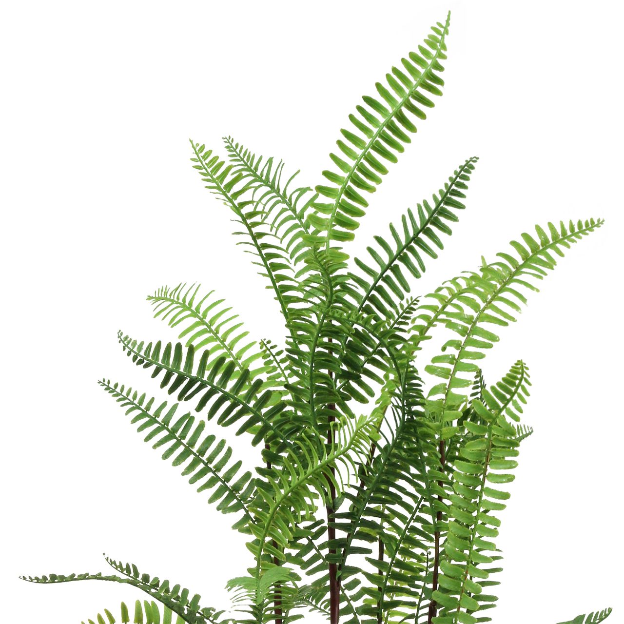 La felce verde nella pentola è interamente in plastica e ha un'altezza di circa 80 centimetri. Il diametro della pentola è sul fondo in circa 11 centimetri.