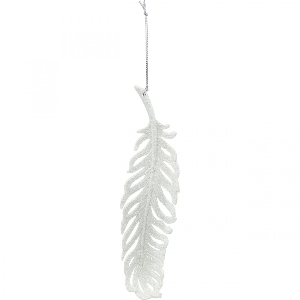 Federn zum Hängen, Christbaumdeko, Deko-Federn mit Glitter, Hochzeit Weiß L19cm 12St
