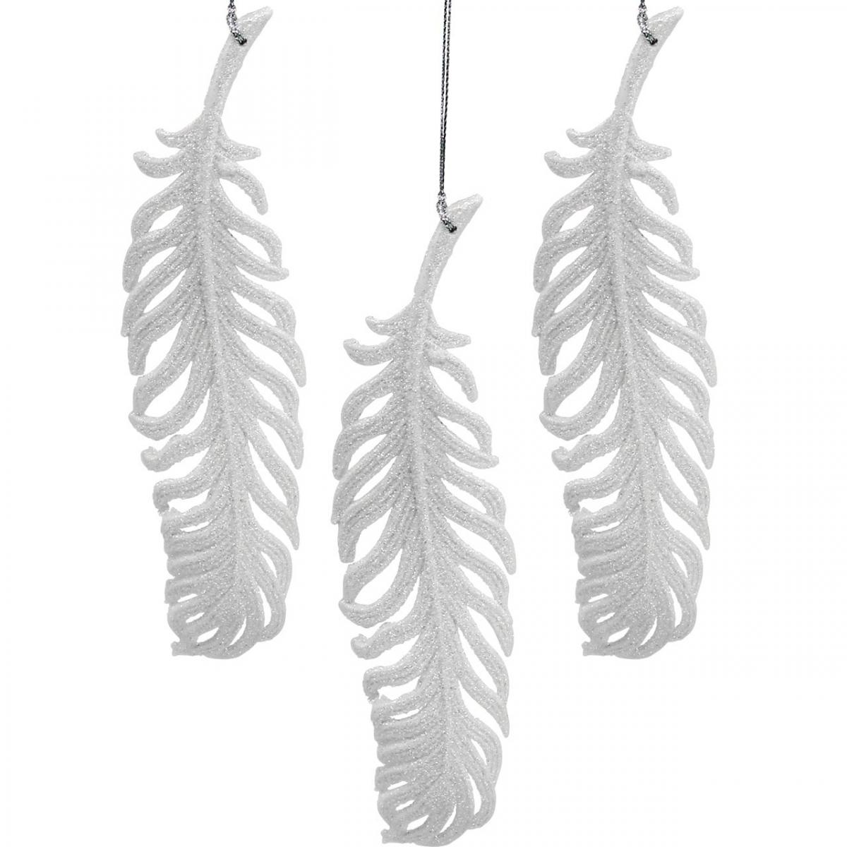 Plumes à accrocher, décoration de sapin de Noël, plumes décoratives à paillettes, mariage blanc L19cm 12pcs