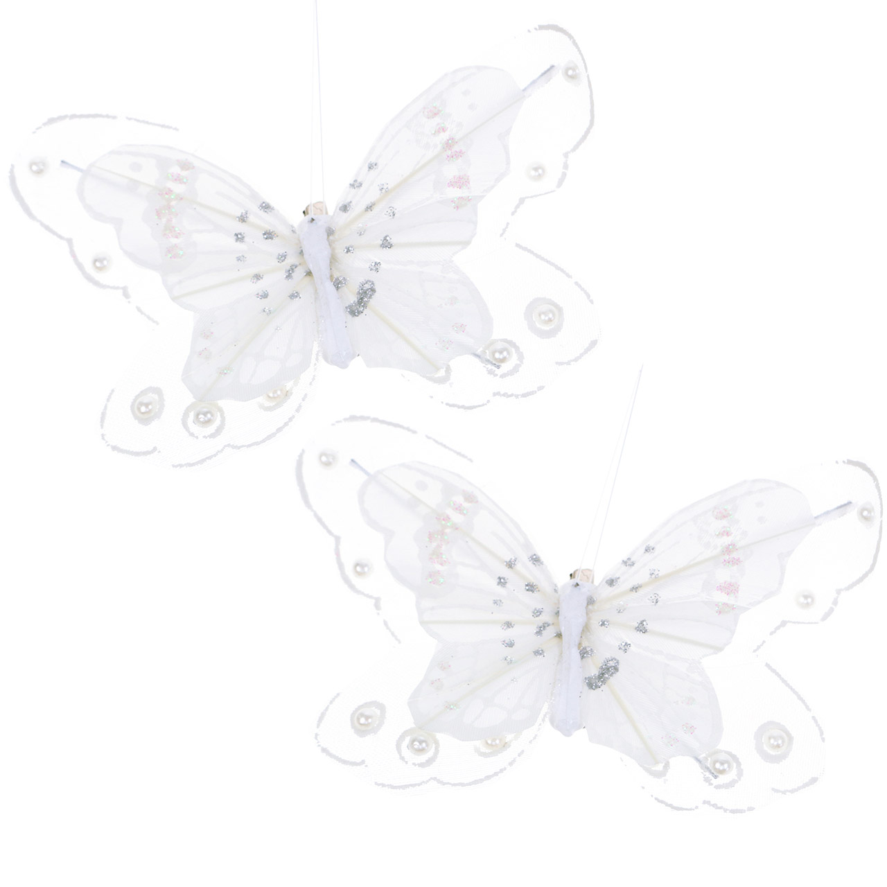 Feder Schmetterling auf Clip Weiß 10cm 12 St