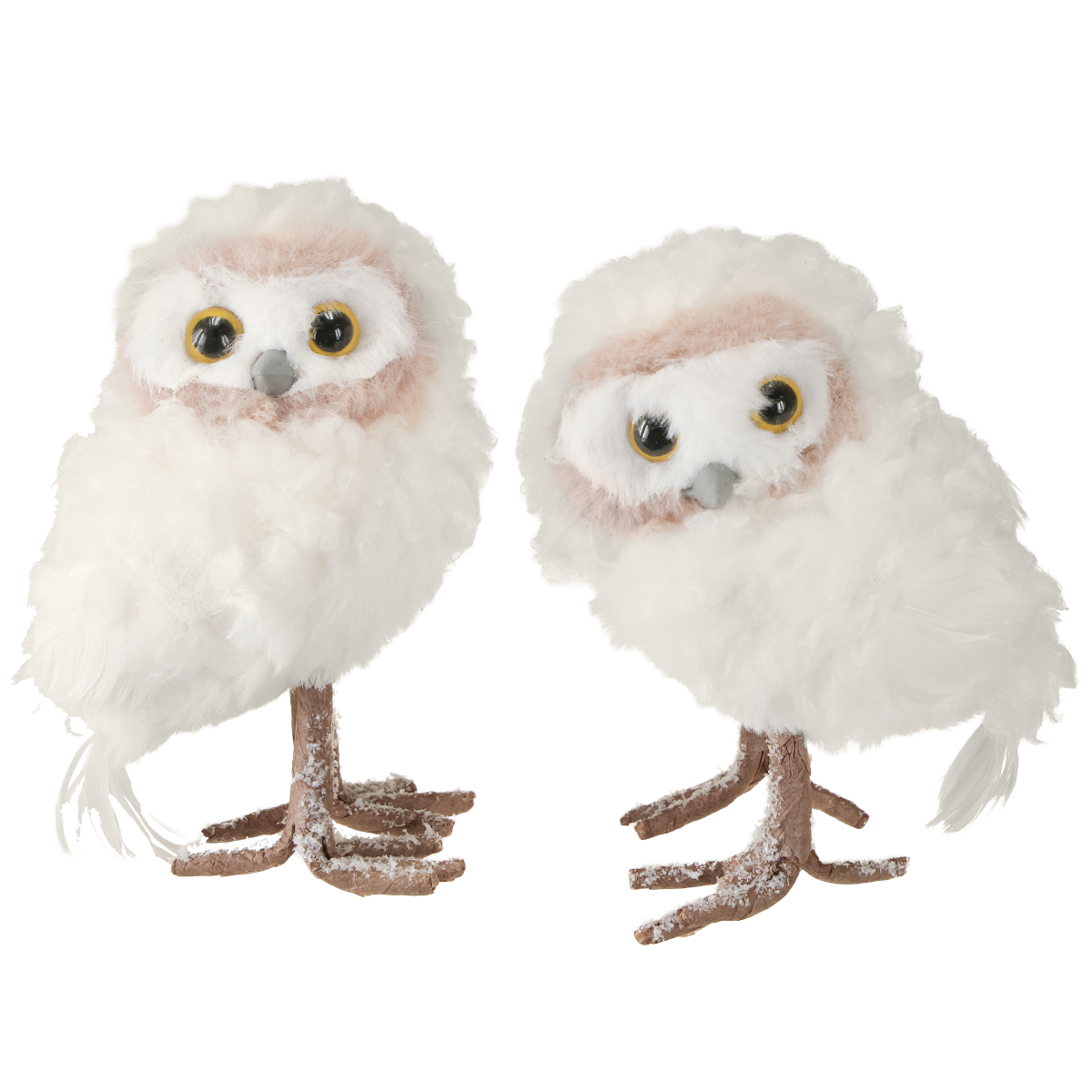 Décoration d'hiver figurines décoratives de hibou à poser blanc 15 cm 2 pièces