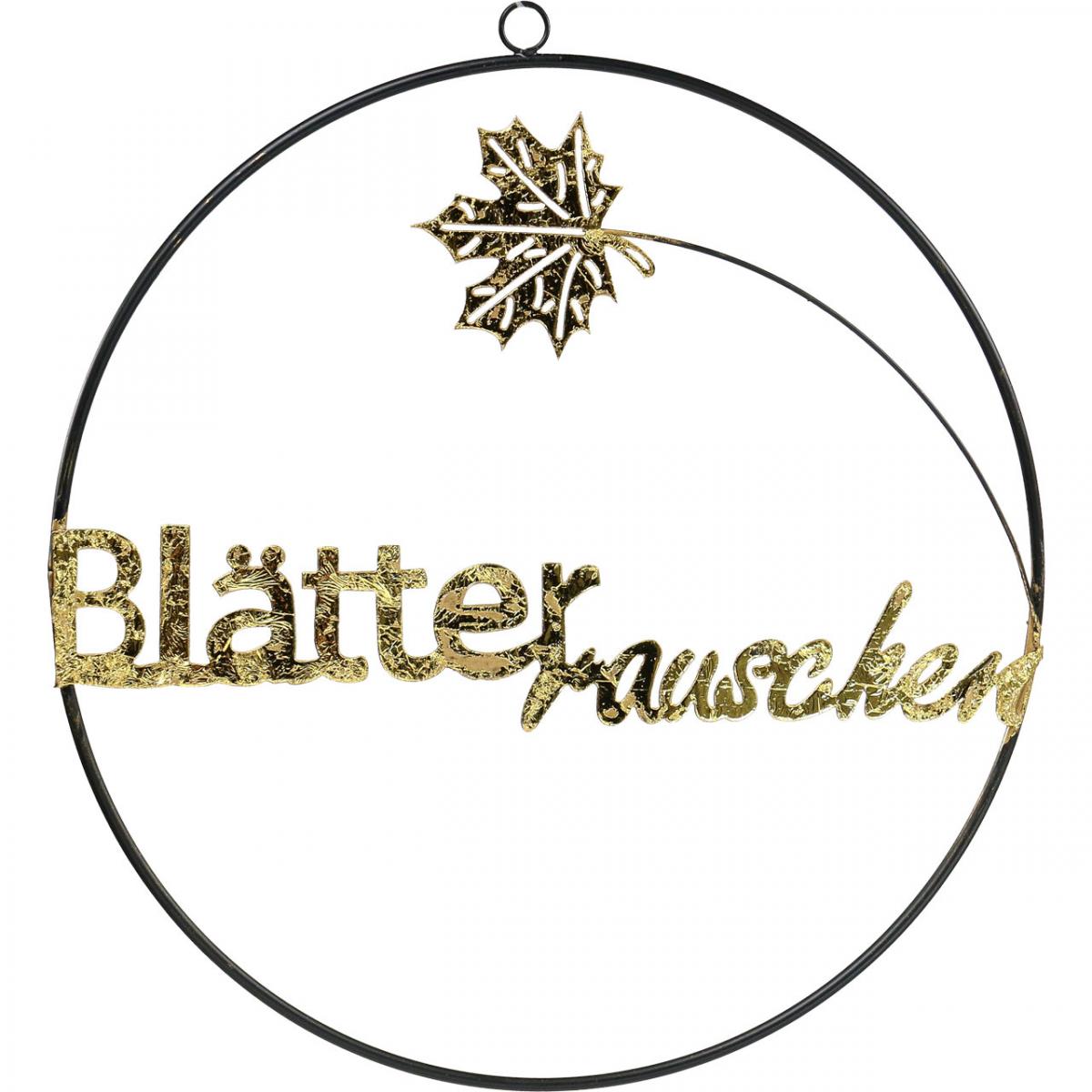 Cette décoration de fenêtre pour l'automne avec lettrage en métal apporte un « bruissement de feuilles » automnal chez vous en un rien de temps !La décoration de fenêtre inhabituelle avec une feuille d'érable en noir et or dans l'anneau décoratif est une décoration d'automne qui attirera tous les regards !