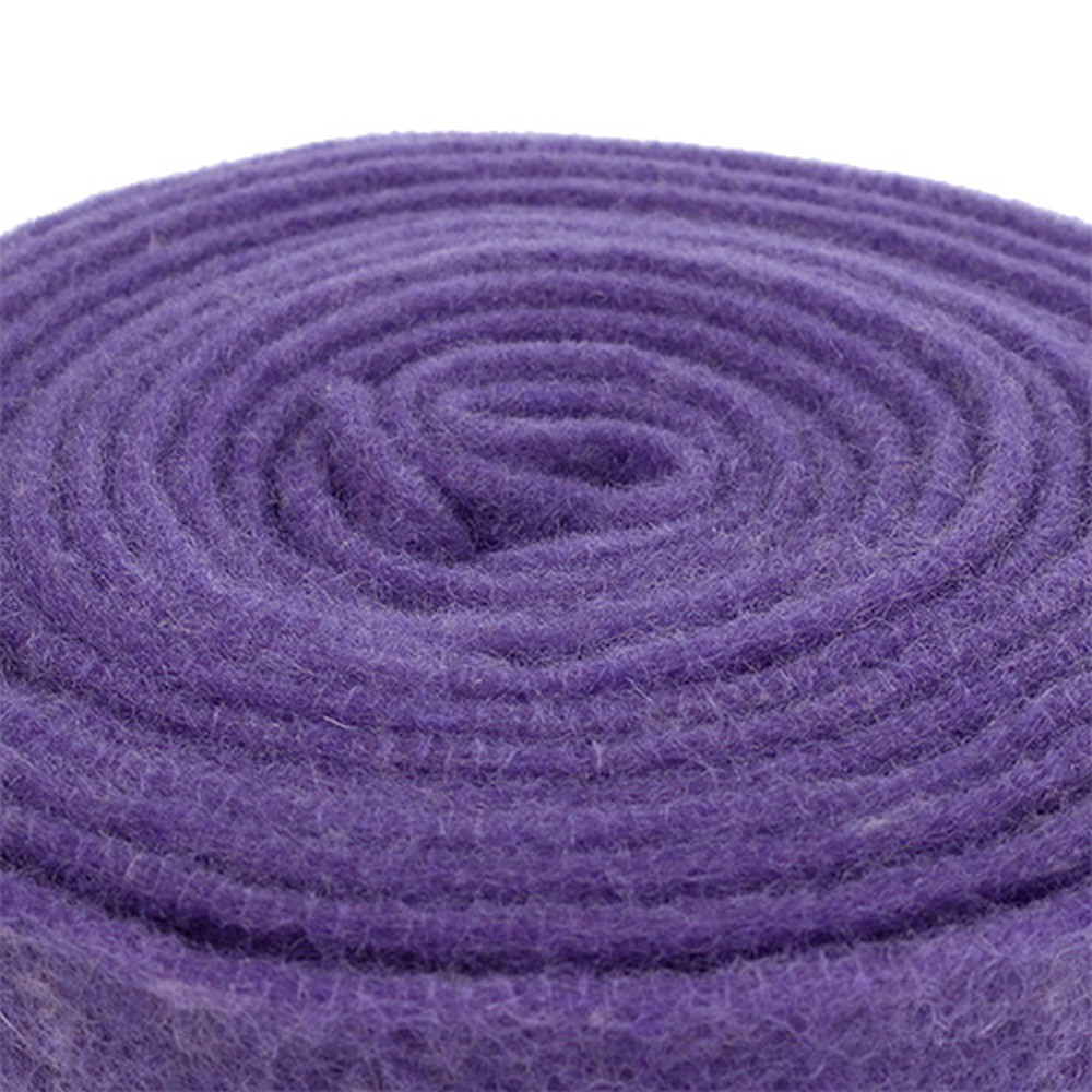 Notre bande de feutrine violette en laine de mouton a une largeur de 15 cm à peu près et une longueur de 5 m environ, elle convient donc parfaitement pour bricoler, coudre et décorer. Elle est enroulée en grande bobine et se découpe très facilement.