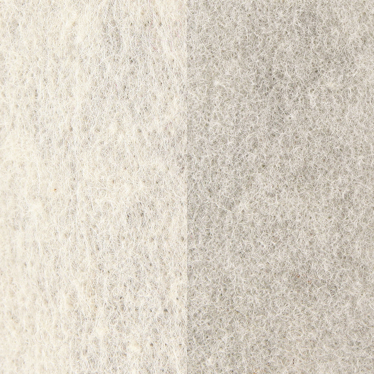Die Länge des zweifarbigen Filzbands in Grau und Weiß beträgt ungefähr 5 Meter; bei der Breite sind es circa 15 Zentimeter. Das Dekoband besteht zu 100% aus Wolle.