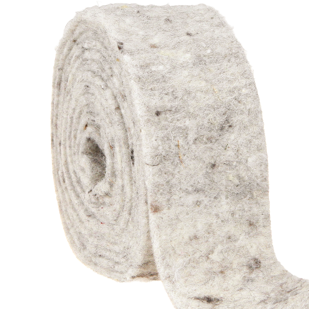 Das graue Filzband ist etwa 5 Meter lang und ungefähr 7,5 Zentimeter breit. Da es zu einer handlichen Größe aufgerollt wurde, lässt es sich leicht in einem größeren Schubfach, im Schrank oder im Nähkorb lagern.