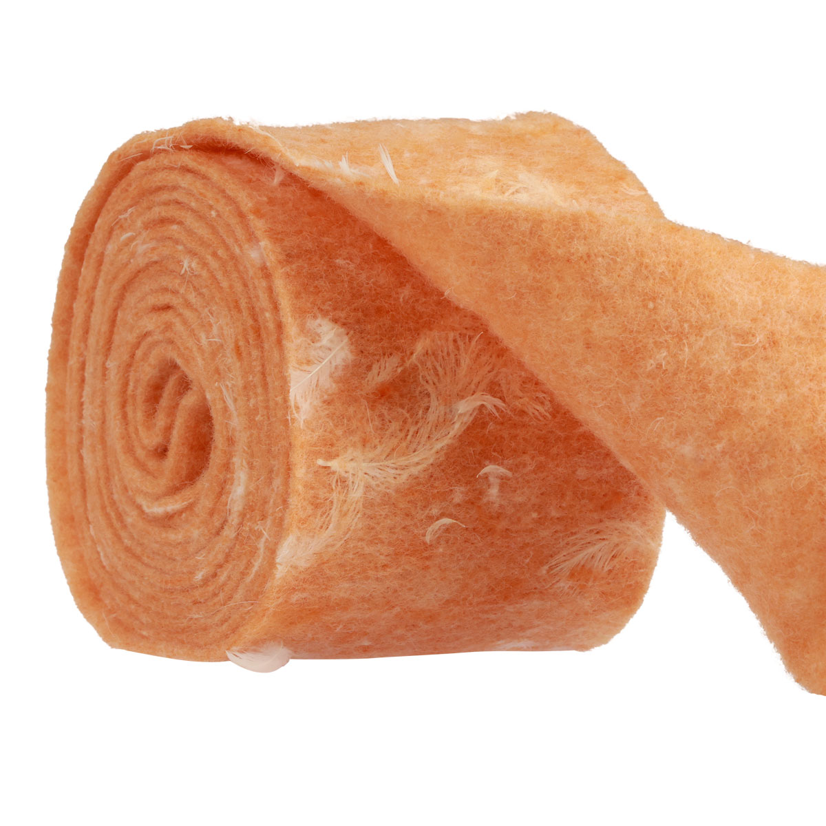 Delicate piume bianche decorano questo feltro di lana arancione. Il nastro in feltro soffice e morbido dal colore caldo e amichevole si abbina meravigliosamente alla tua prossima decorazione estiva!Nel nastro di lana sono intrecciate vere piume d'oca. Con il loro bianco naturale e brillante, le piume donano un meraviglioso accento di freschezza al tessuto decorativo. E questo feltro di lana è anche un attraente travestimento o una decorazione da tavola per l'estate.