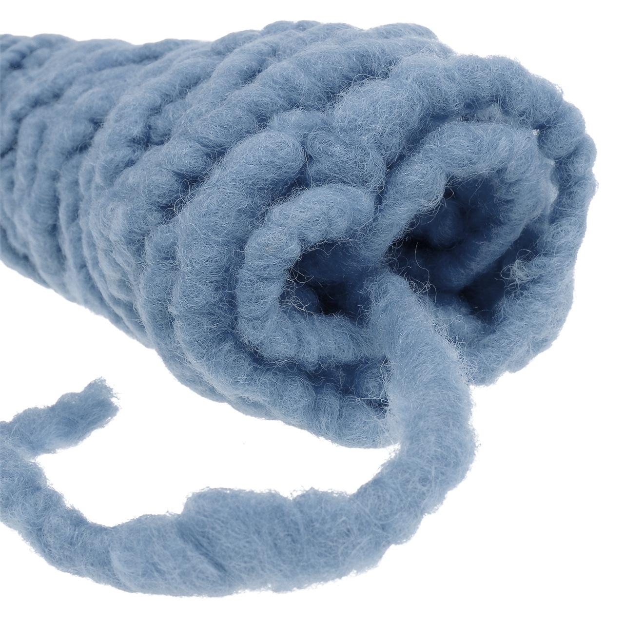 Notre cordelette de feutrine blanc-bleu „Flausch Mirabell“ se compose à 42 % de jute et à 58 % de laine et a une longueur de 25 m environ. Le diamètre de la ficelle de feutrine ronde atteint 1,5 cm, mais peut éventuellement varier car ce matériel peut être pincé ou pressé.
