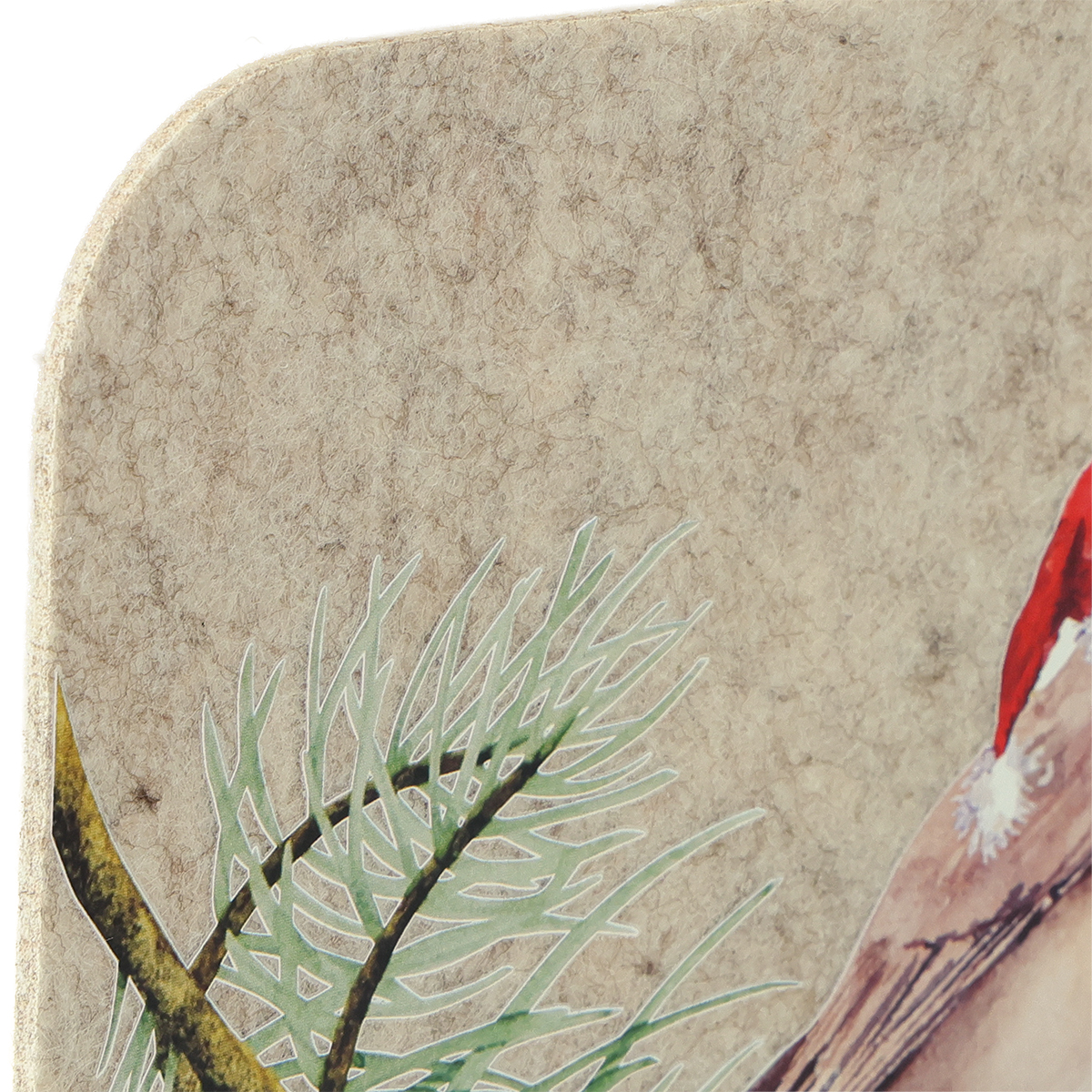 - Einzigartiger Aufdruck: Rotkehlchen mit Weihnachtsmannmütze auf Nadelzweig